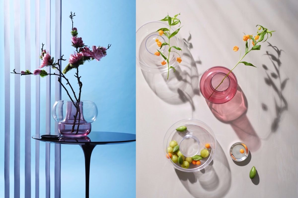 前出の花器「CADO Vase」も同じくガラスが素材だが、こちらは「いろいろな花器を試してきた人に、もう少し違うものを提案したい」とデザインしたものだそう。