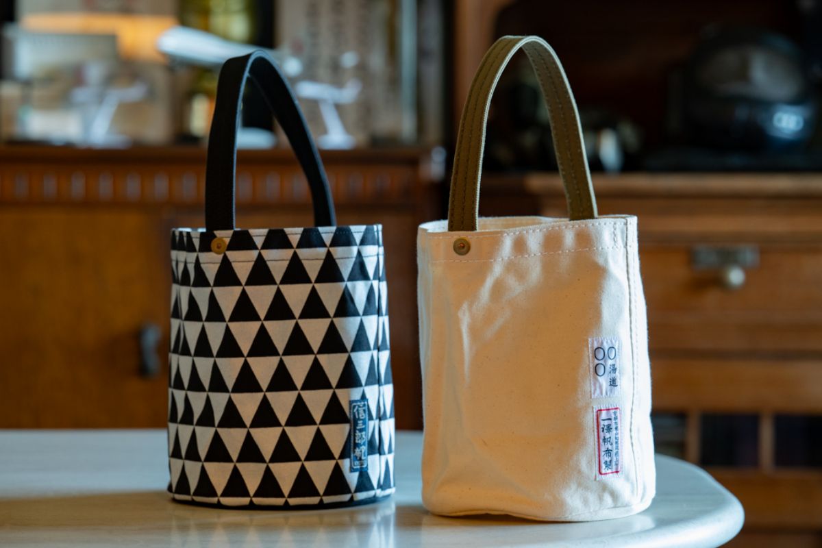 50個以上であればオーダーメイドも可能。小山さんは自身の会社、オレンジ・アンド・パートナーズの10周年記念パーティーでゲストに配布したかばんに自社のネームタグを入れたり、小山さんが立ち上げ、初代家元を務める「湯道」用に、狐桶と呼ばれる片手桶やタオルなどを入れられるバケツ型の「湯道かばん」を作ったりもしている。