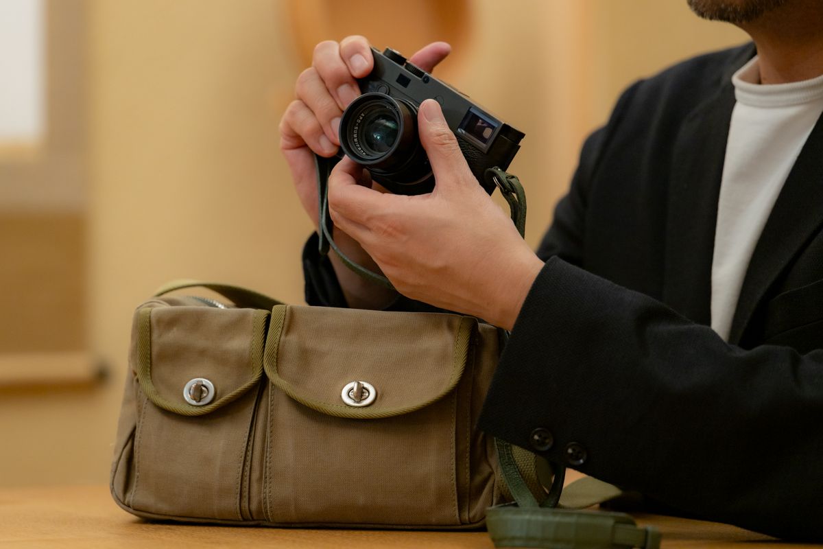 「バケツ型バッグは京都市のふるさと納税の返礼品『魔法のどんぶり』を入れる“手提げどんぶり鞄”としても作ってもらっています。これを持って下鴨茶寮やイノダコーヒーとかに行くと、裏メニューを出してもらえますよ! あと、ショルダーバッグにはいつも愛用するライカのカメラとレンズを入れて持ち歩いているんですが、あまりにもいいので、ライカの社長に『コラボモデルのカメラバッグを作ったほうがいいですよ』って勧めました。そしたら、実際に彼らはひと回りかふた回り大きいショルダーバッグをベースに作ったんですよ。もちろんそれは買いましたけど、僕にはちょっと大きすぎたので、結局元のほうを使い続けています」