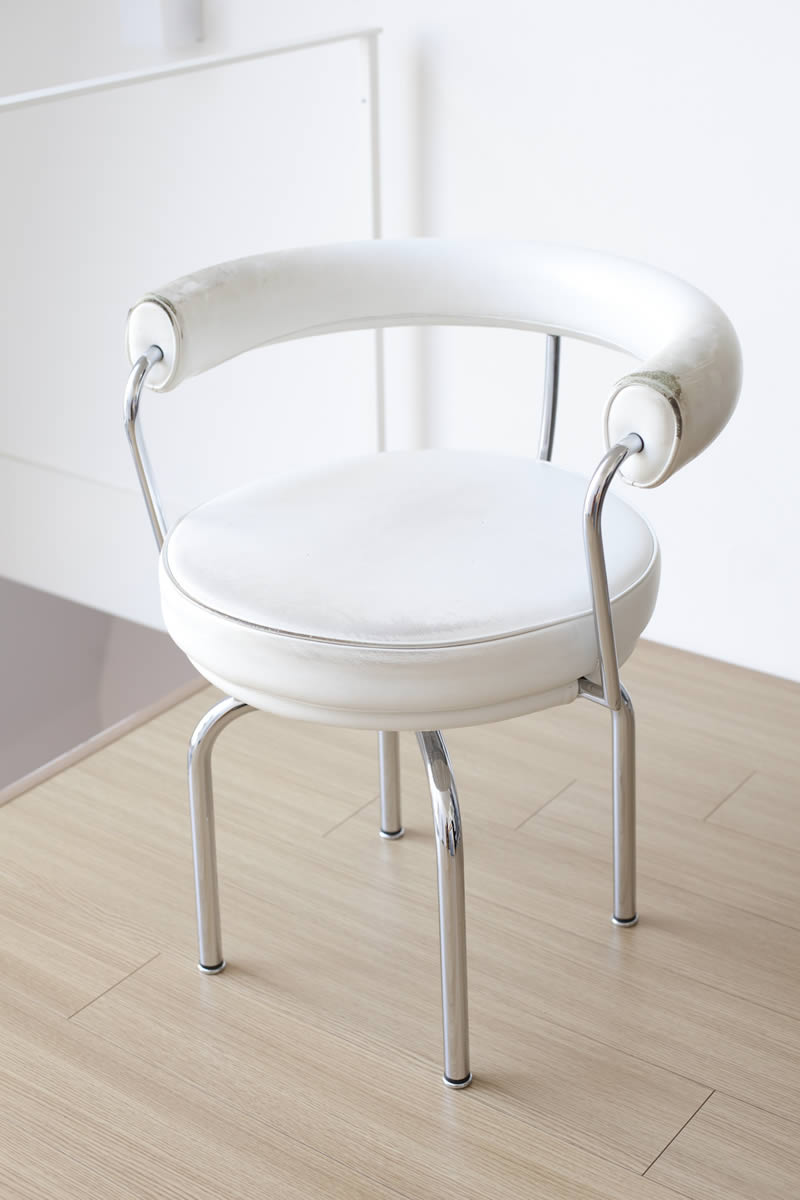 その松井氏が15年近く愛用しているのが、近代建築の三大巨匠の一人、ル・コルビュジエのチェア「LC7」だ。出会いは高校時代。今では珍しいデザイン科のある高校で、モダニズムの源流のひとつとされる教育機関バウハウスの活動や、ル・コルビュジエ、ミース・ファン・デル・ローエといった建築家のことを学んだ。当時はポストモダンが脚光を浴びていたが、松井氏は流行に目配りしながらも、「それでも、建築も含め、ル・コルビュジエの家具は圧倒的に光り輝いていました」と語る。