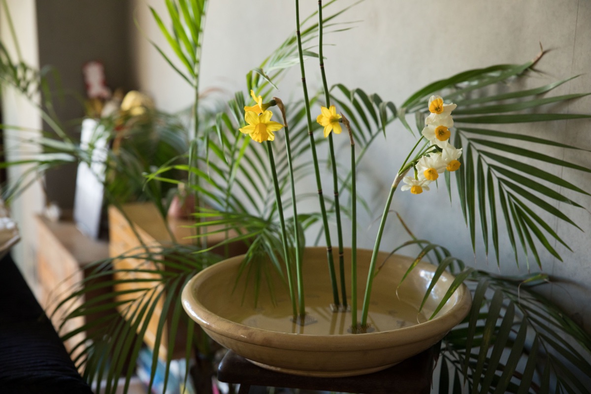 現在お二人が住まう部屋は6階建てマンションの5階。広めのベランダが付いているので、そこで植物を育て、採ってきた花を花器に活ける日常を好ましく思っている様子だ。季節がよければベランダで昼寝をすることもあるという。