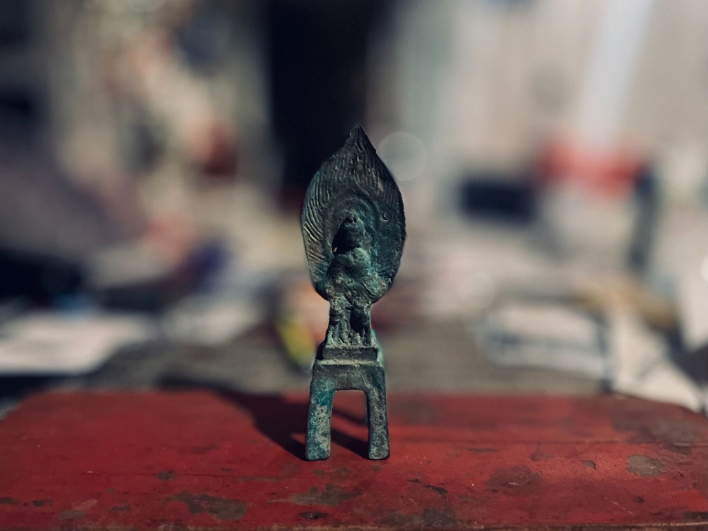 第15回の今回紹介するのは、中国で昔に作られた青銅の仏像です。いつの時代のものかもわからないのですが、高さ15cm程度という手頃なサイズ感、時を経てよりそぎ落とされた分なのか悟り感が増したような仏様の表情、光背のくすみ具合といい、自分好みの仏様が某オークションに出品されており、手の届く価格だったこともあり思い切って先日購入してみたものです。