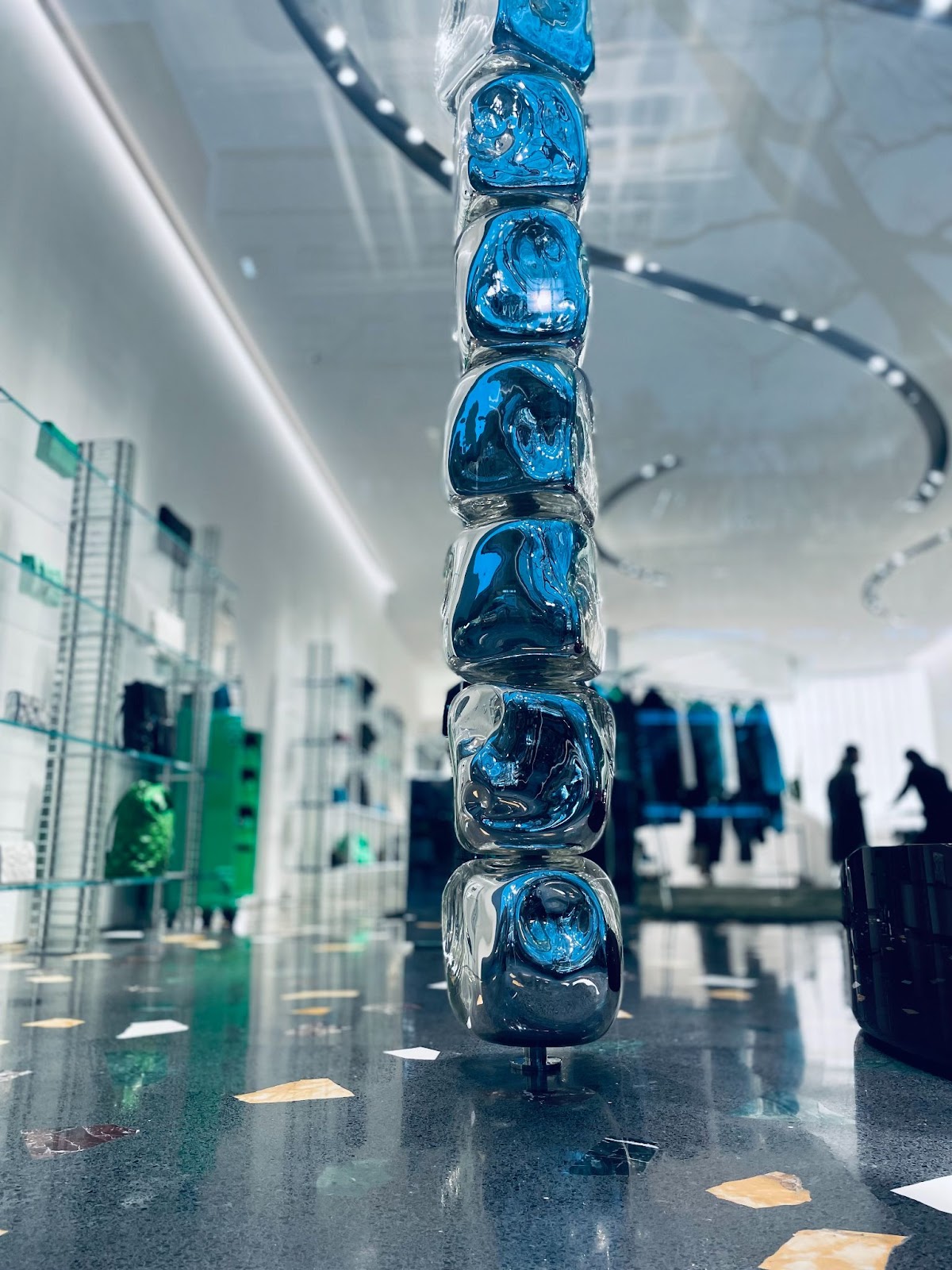 三嶋さんのガラスの作品はザ・リッツ・カールトン京都のロビーの竹をモチーフにしたものやコレド室町テラスのパブリックスペースに作品が設置されており、目にしたことがある人もいらっしゃるかもしれません。ボッテガ・ヴェネタ表参道のショーウィンドウにも三嶋さんのガラスブロックが連なったタワーが鎮座しており、独特の存在感を放っています。
