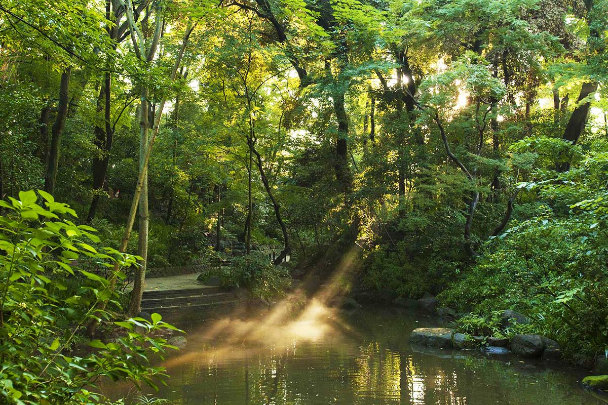 新宿区下落合にある「御留山」と呼ばれるエリア。物件の近くにある「おとめ山公園」の周辺は、江戸時代には将軍家の狩猟場だったと伝えられており、湧水や高低差のある斜面緑地、樹林など、豊かな自然が残っています。現在は高台に位置する高級住宅地として、古くからある瀟洒(しょうしゃ)な邸宅が建ち並び、上品な雰囲気が漂う街並み。JR山手線「目白」駅などにも近く、利便性が良い都心であるにも関わらず、都会の喧騒とは無縁の静かな時間が流れているのです。