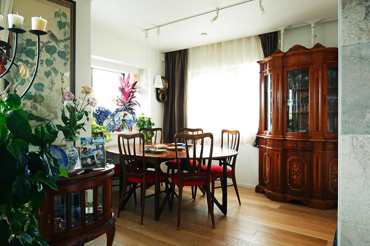 「海外では家に自分の好きなものを集めて飾るのは当たり前の習慣。日本とは文化が違いますから、本人はものが多いとは思ってはいなんです(笑)。現在は壁にピクチャーレールを増やして、自由自在に絵を飾れますし、季節ごとにセッティングを変えて楽しむこともできるようになり、とても快適に暮らせています」(奥さま)