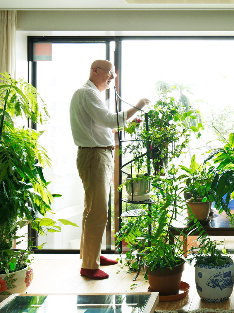 お二人がリビングダイニングで過ごすときは、広々とした空間に飾られたこだわりのコレクションを眺めながらくつろがれます。ご主人は植物のお世話をしている時間も楽しいといいます。