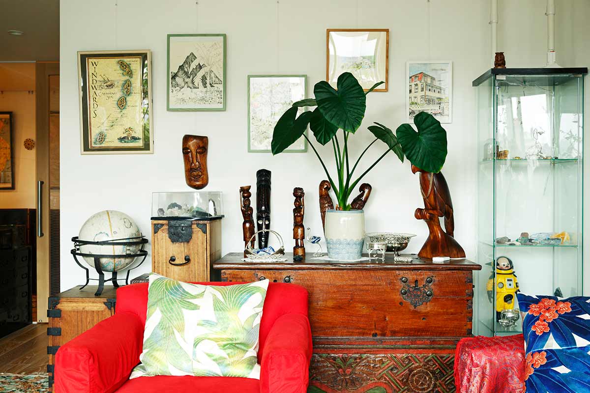 文明開化の時代の日本に興味を持ち、明治時代の錦絵や書籍などを蒐集するご主人。コレクションはそれだけに留まらず、世界各地の工芸品やアート、アンティーク家具、陶器など、幅広いジャンルに及んでいます。