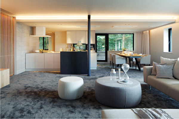 貴重なコレクションや植物を自由に飾れる、開放的で広々な間取り。