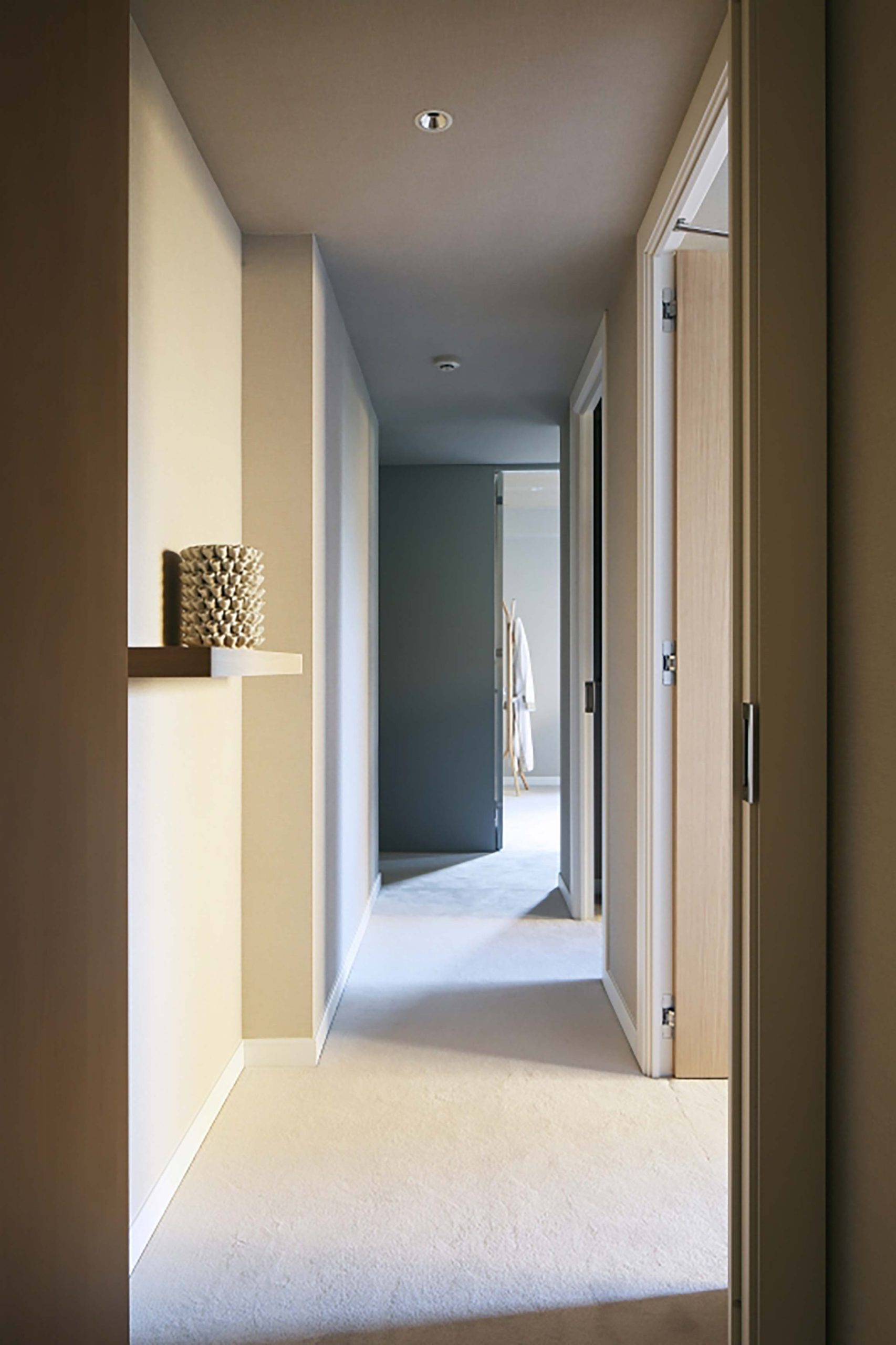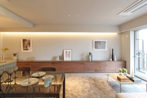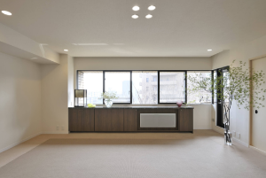 〈広尾ガーデンヒルズ〉では、全体としての価値を維持する観点から、内装工事も管理組合によりきちんと協議のうえでルールが定められている。住戸間の生活音対策として、床はカーペット敷きが必須とされている。直に座ったり寝転んだりしても心地よいカーペットの床は、寛ぎの空間に最適だ。