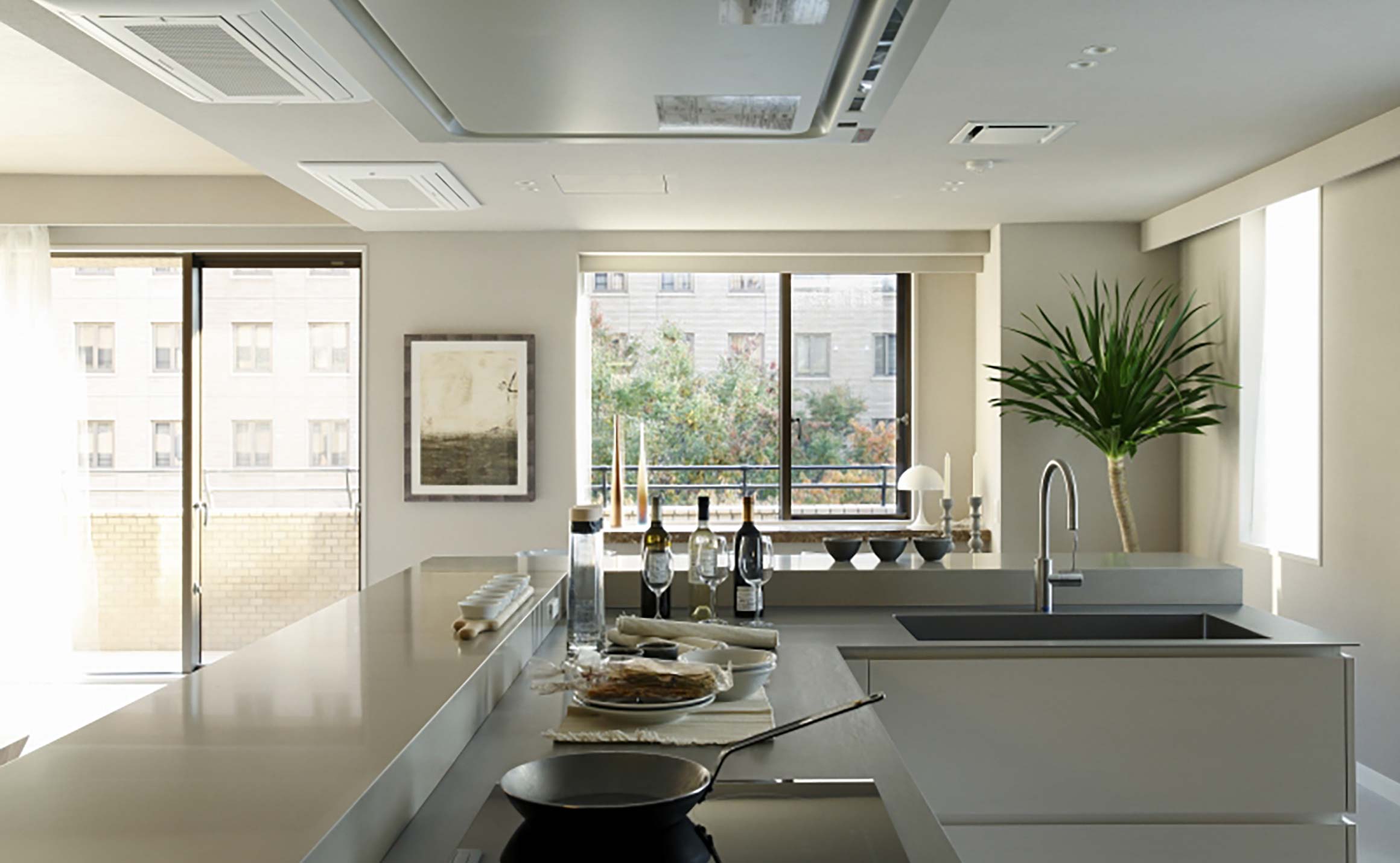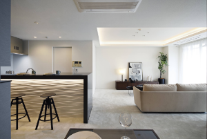 分譲時の間取りでは、キッチンは、リビングダイニングとは壁で仕切られた独立型になっている。間仕切りを取り除き、リビングダイニングと一体にしたオープンキッチンをつくることも可能だ。シンクや家電が見えることに抵抗がある場合には、手元が見えないようにカウンターに高さを持たたり、背面に隠せる収納棚をつくったりすることで、整然とした印象にすることができる。実用性と空間美を両立させることが、住まい手の満足感を高めるポイントだ。