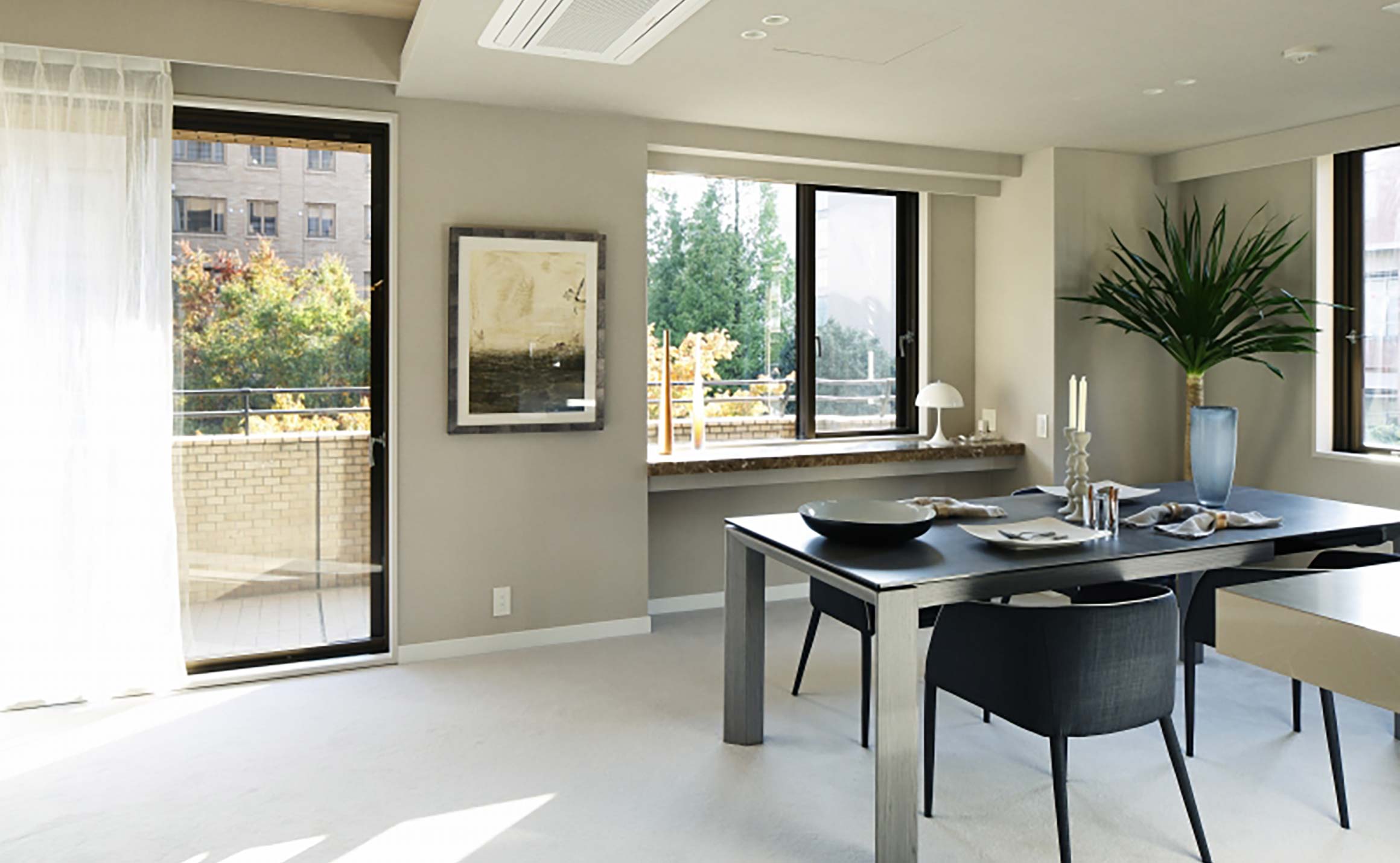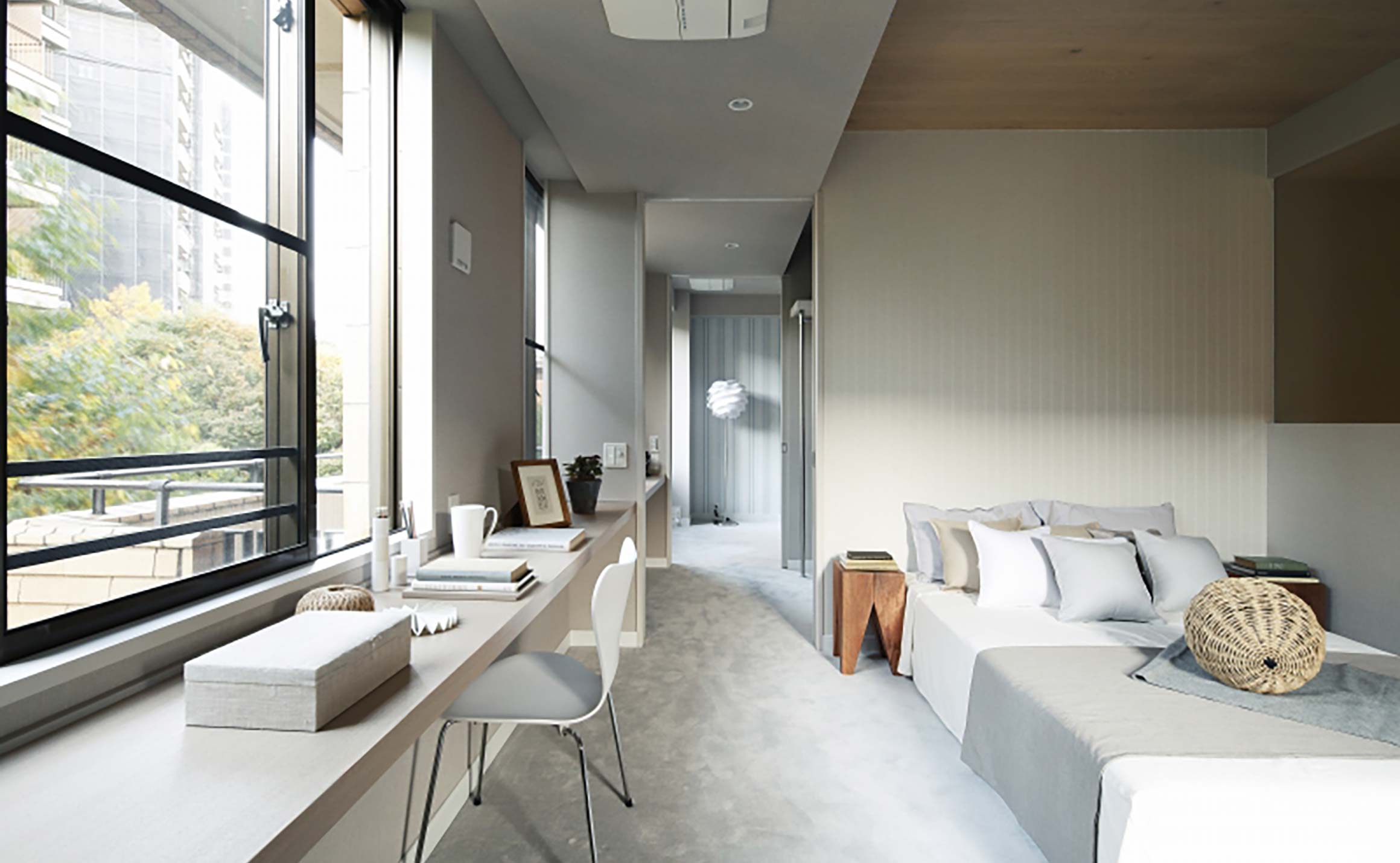 そんな“広尾の森”の風景を部屋の中からも満喫できる住まいとして、R100 tokyoがおすすめするのは中層階住戸だ。高層階はもちろん眺望は開けているが、植栽を眼下に見下ろすかたちになる。中層階では、ちょうど窓から豊かな緑が目に入り、行き帰りだけでなく暮らしの中で常に緑を身近に感じることができるのだ。4階、5階の住戸が空くのを待っていて、敷地内から引っ越す住民もいるというのも頷ける。