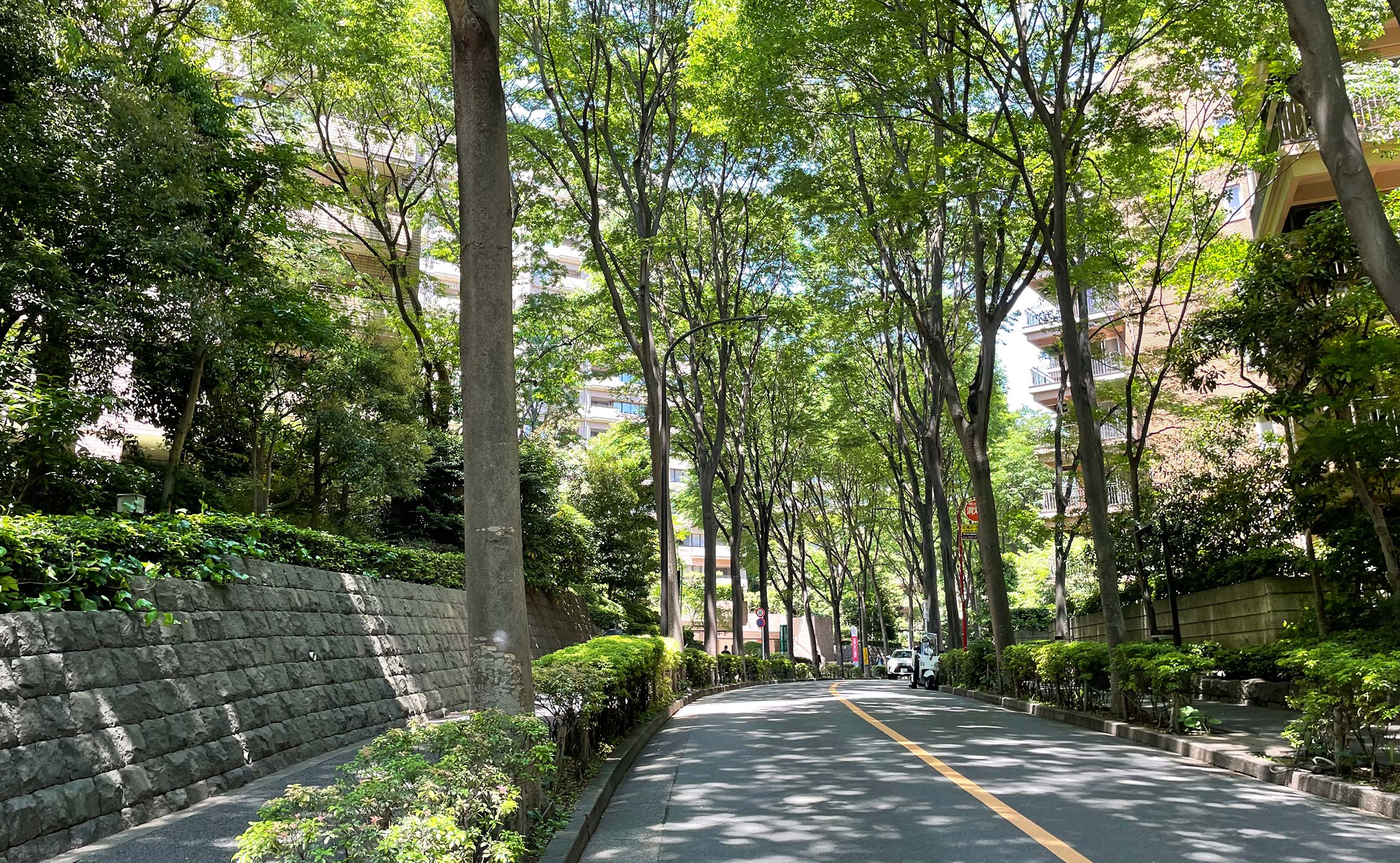 訪れた人ならば誰しも、この街の風景は特別な印象をもって心に刻まれるのではないだろうか。買い物や散策に訪れた人々で賑わう広尾の街から1本道を入ると、深い緑に包まれたヨーロッパの街区のような街並みが現れる。高台を緩やかにのぼっていくケヤキ並木は、ここに広がる心地よい暮らしへの期待に満ちている。住まう人は、この風景を見るたびに「家に帰ってきた」というやすらぎを覚えるのだという。