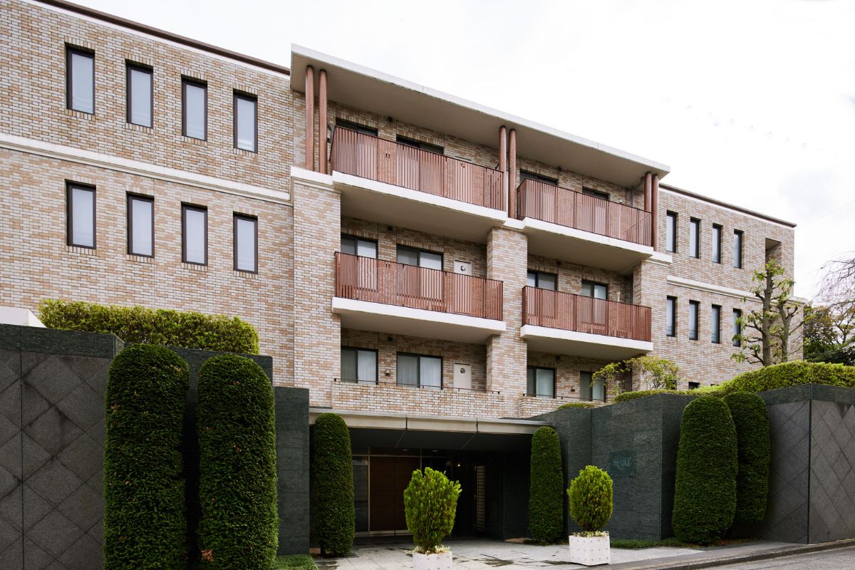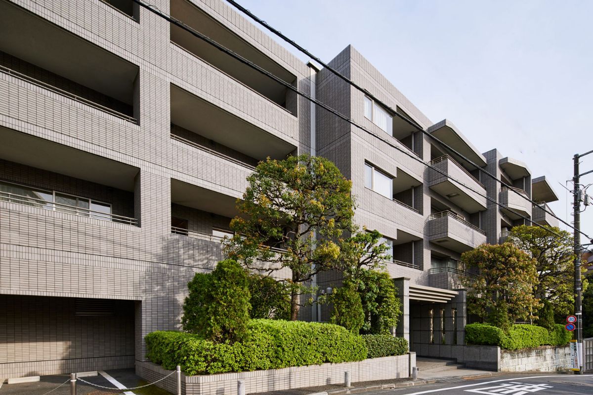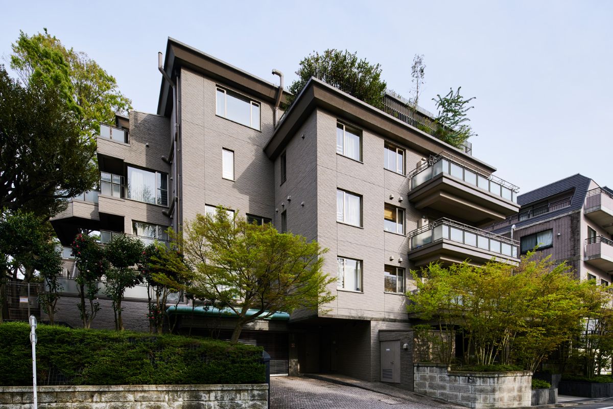 代々木大山公園近くに位置する総戸数8戸の邸宅マンション。植栽を豊かに施し、落ち着いた邸宅街の雰囲気を醸成している。2004年築とペアシティシリーズでは比較的新しいが、「建築は芸術品」の思想を受け継いだ上質な外観デザインが目を引く。