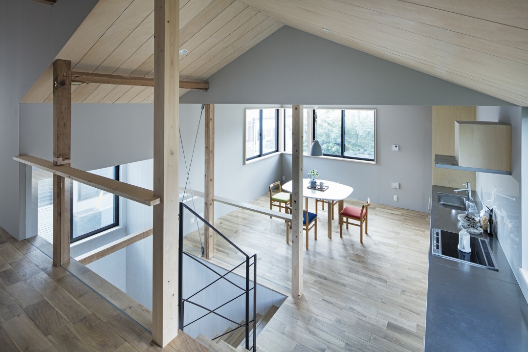 シンプルな器のような、大らかな空間でありながら、高低差のつくり方と、それぞれの間の開き方で調和を整えた家。1階から見上げると空が、2階に立つと緑が。窓が景色を切り取ります。 立地するのは荻窪の閑静な住宅街。かつて大正時代から明治にかけては「西の鎌倉、東の荻窪」と称された別荘地で、多くの文化人に愛されてきた街です。ここに約150㎡の大らかな空間があります。