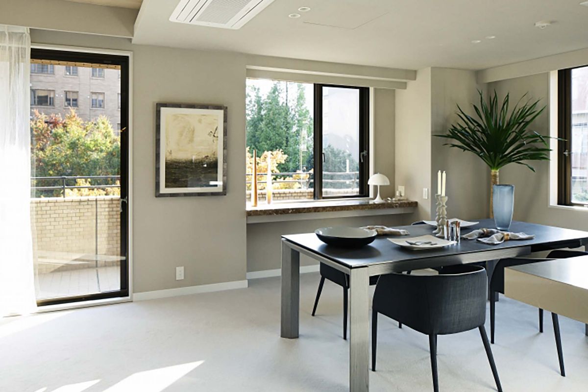 総戸数17戸、地上5階建てと小規模な「赤坂氷川町パーク・マンション」は、閑静な邸宅街に溶け込むように存在します。大きな庇のエントランスや、広いロビーから見える日本庭園ほか、上質な暮らしを体現したようなマンションです。専有面積はゆとりがあり、都心では希少な約200㎡近い住戸もあります。