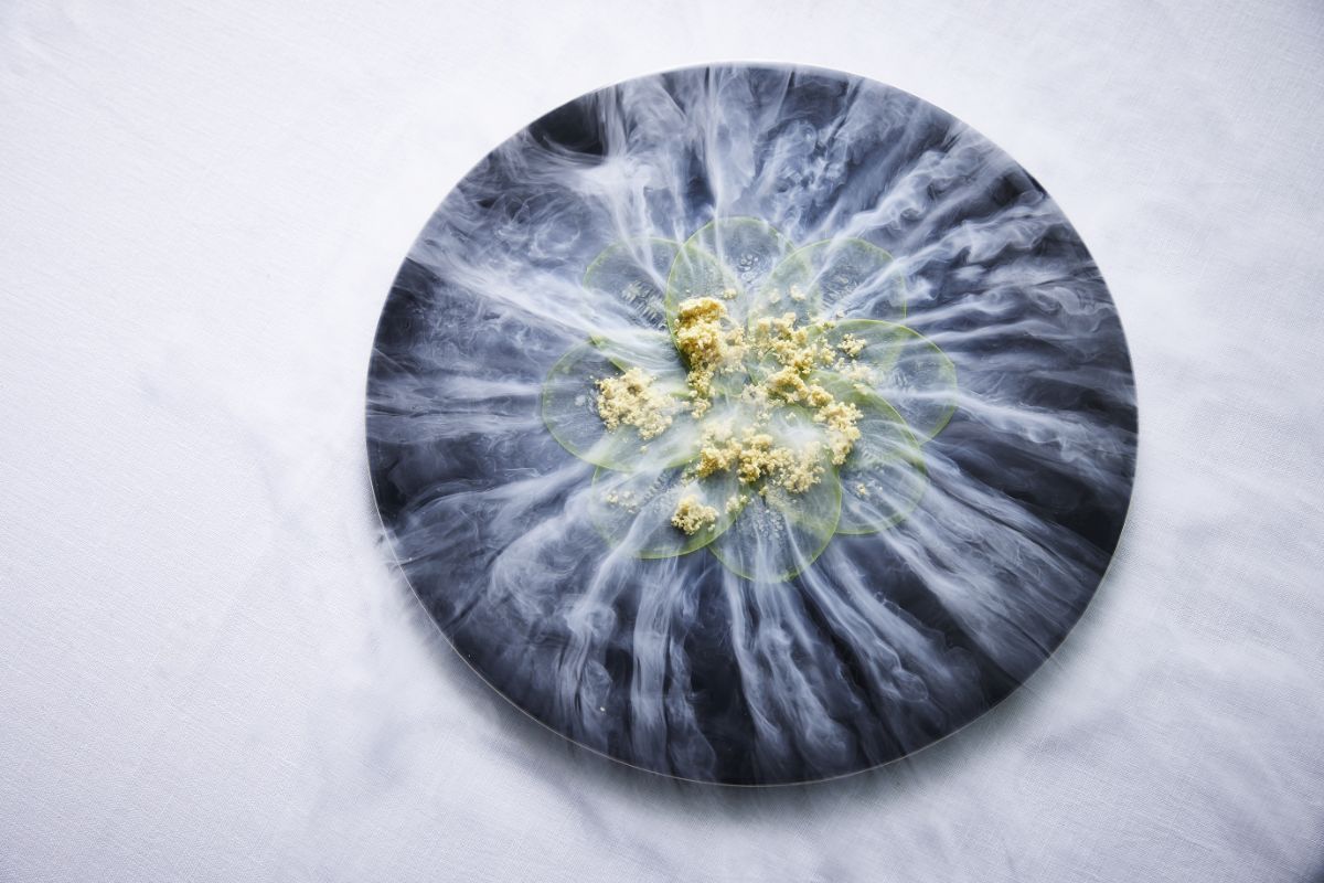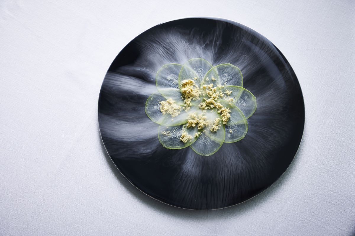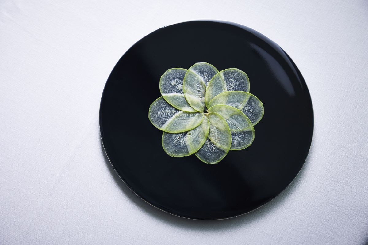 驚いたのはヴィーガンのコースだ。このレストランには、日本のガストロノミーではまだまだ珍しいヴィーガンのコースが用意されており、しかもこのクオリティーが素晴らしいと大評判なのである。銀座という街で食事を楽しみたいと思う客層はトラディショナルで保守的で、肉や魚を用いる料理以外を受け入れることなどあり得ないのでは? 日本を代表する老舗ブランド「資生堂」が、これほどチャレンジングなヴィーガンを採用するとは、本当だろうか? ……正直に言えば、このようなうがった考えを若干ぬぐえないままに店を訪れたのだけれど、サーヴされる皿の数々に文字通り魅了され、食事が終了する頃には完全にこれまでの考え方はどこかへと消え去っていた。