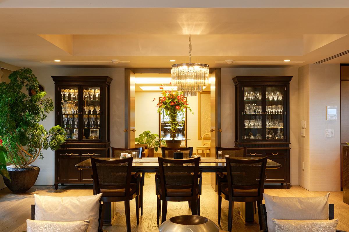 数年前に夫を見送り、2人のお子さんも既に家庭を持つCさんにとって、ここは誰に気兼ねすることもなく、自分だけの豊かな時間を過ごすための住まいなのだ。コレクションしていたゴールドのバカラもこの家に来てからは、ディスプレイするだけではなく使用することに決めた。「昨年の誕生日のとき、実際にシャンパンをいただきました。残りの人生は、そのように楽しんでいきたいと思っております」とCさんは語る。