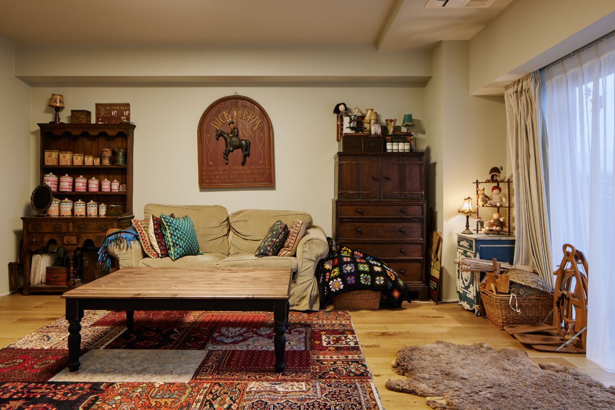 部屋を飾っているアンティークやヴィンテージの家具、雑貨、食器などは、夫が20代の頃から集めているコレクション。その時々でマイブームがあり、少し前はイギリス、最近はフランスのものに興味があるという。