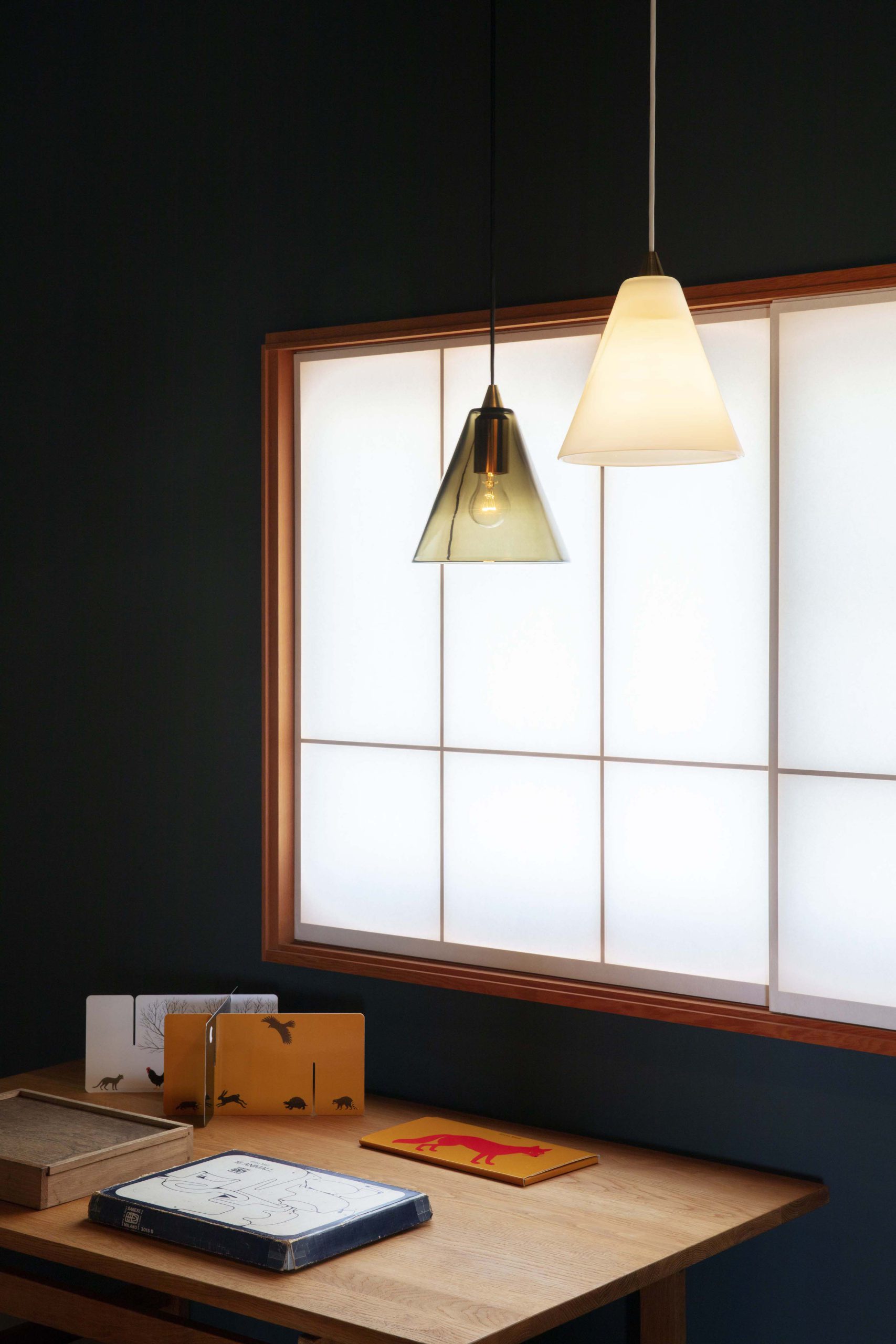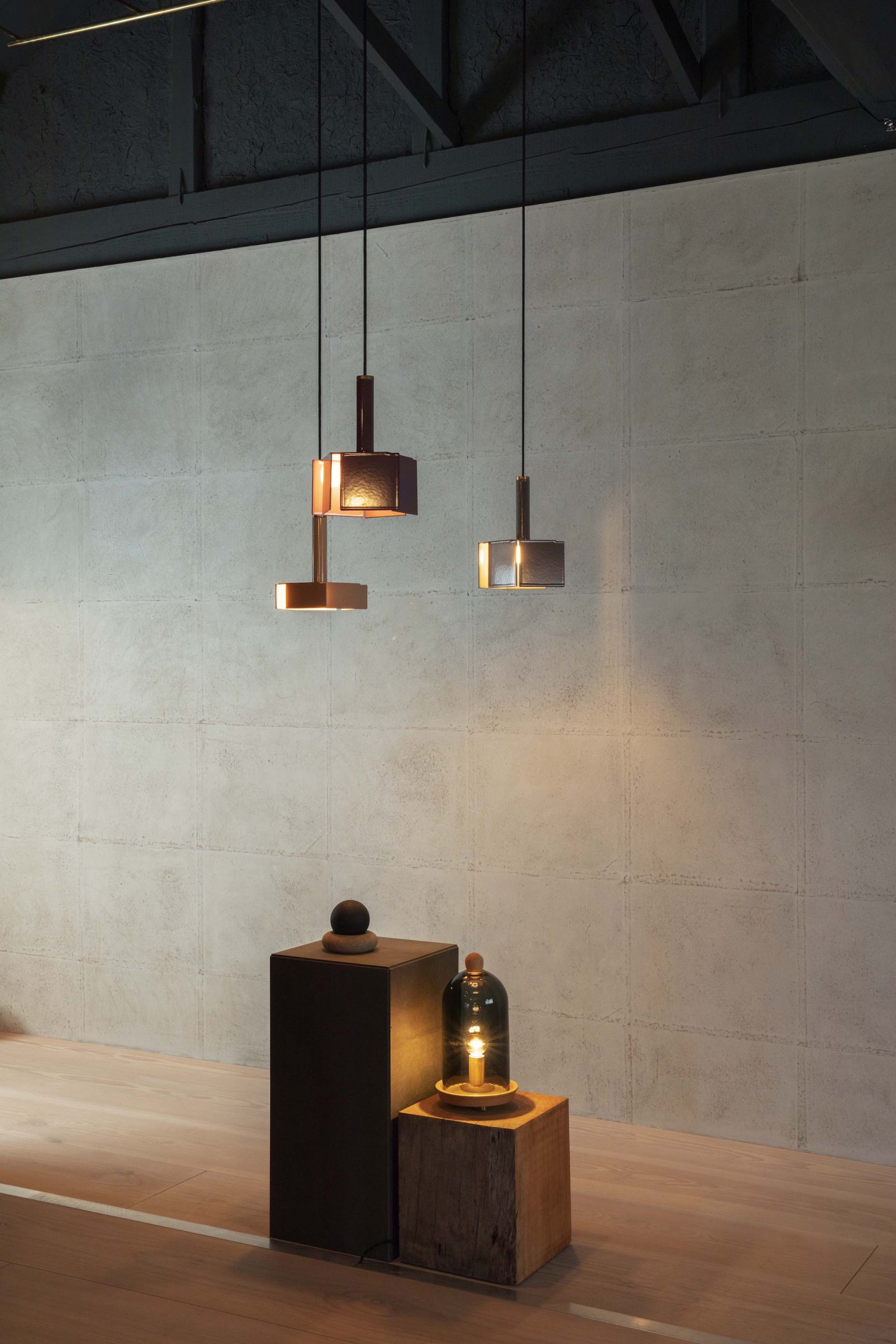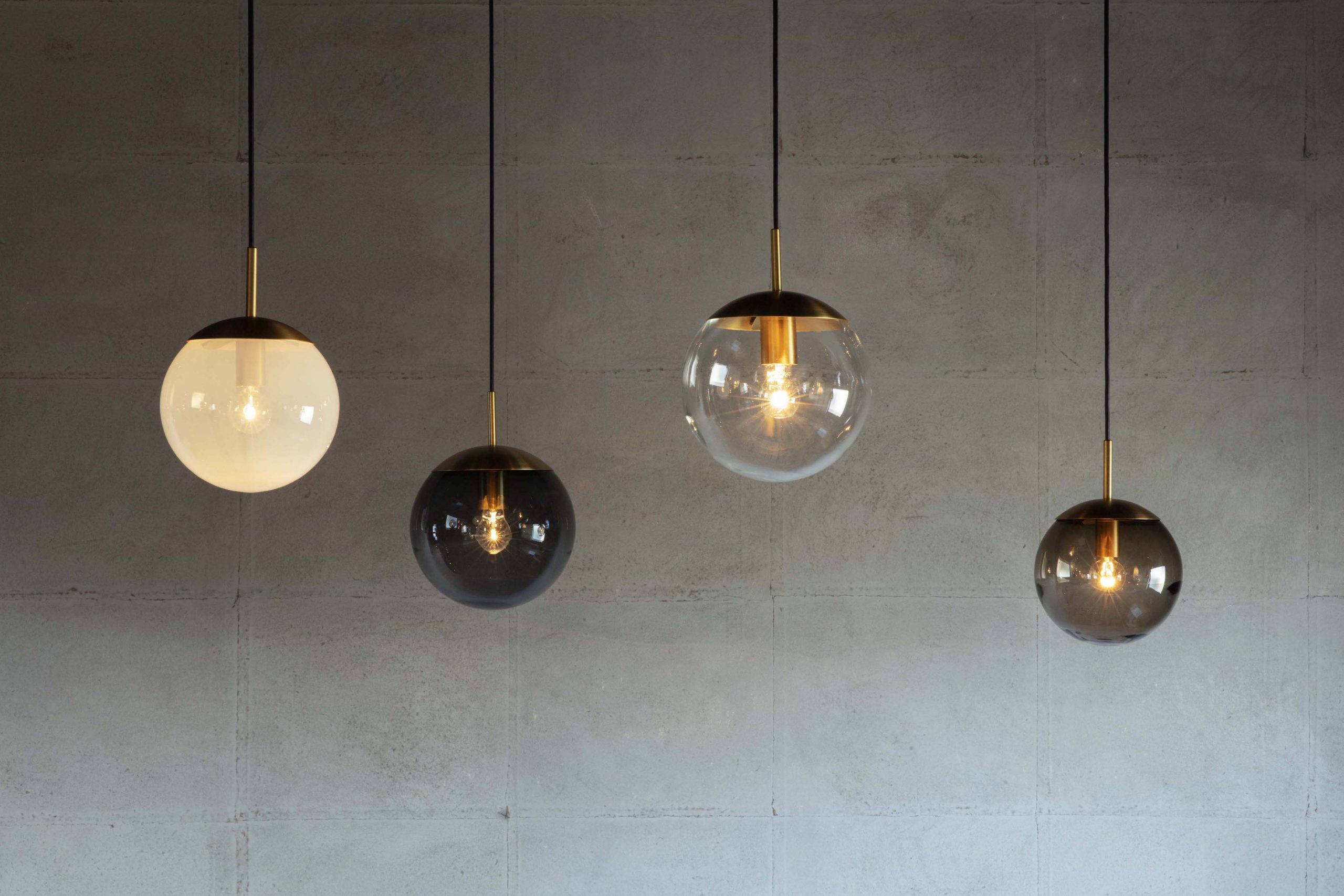 やはり初期からラインアップしている「Solaris」は、マウスブローで製作したガラスグローブと真鍮を組み合わせた、球形のペンダントライト。シェードの下部のガラスを厚くして、光の表情に変化を与えている。このインスピレーションの源になったのは、ドイツのコンスタンティン・グルチッチがデザインした「リレーションズ」というグラスだった。スタッキングしやすいようにガラスの厚みを変えてあり、それによって独特の色のグラデーションを生み出したものだ。