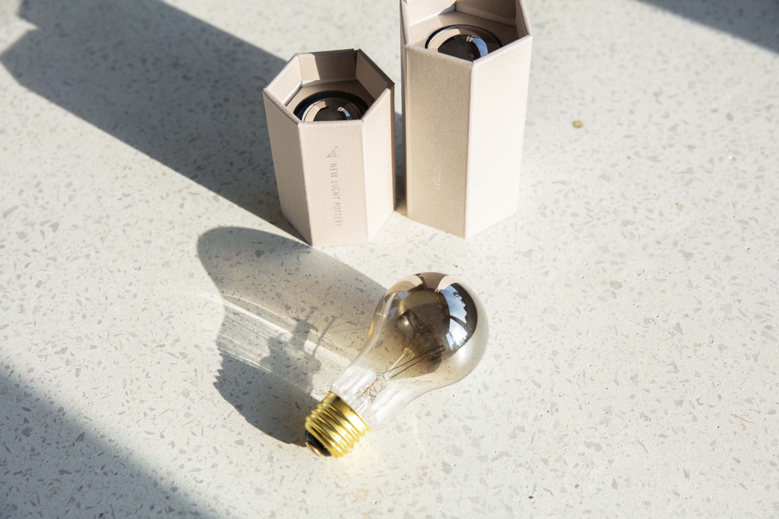 「Bullet」はNew Light Potteryとして最初に発表した定番製品で、鋳物で有名な高岡の能作が真鍮部分を製造している。クリア塗装などを施さない素地のままの真鍮は、年月を経ることで鈍い色合いへと変化していく。この素材を使うのは、十分な重量があるため電気コードに張りをもたせる効果もある。重さは目には見えないが、存在感が確実に違ってくるのだ。