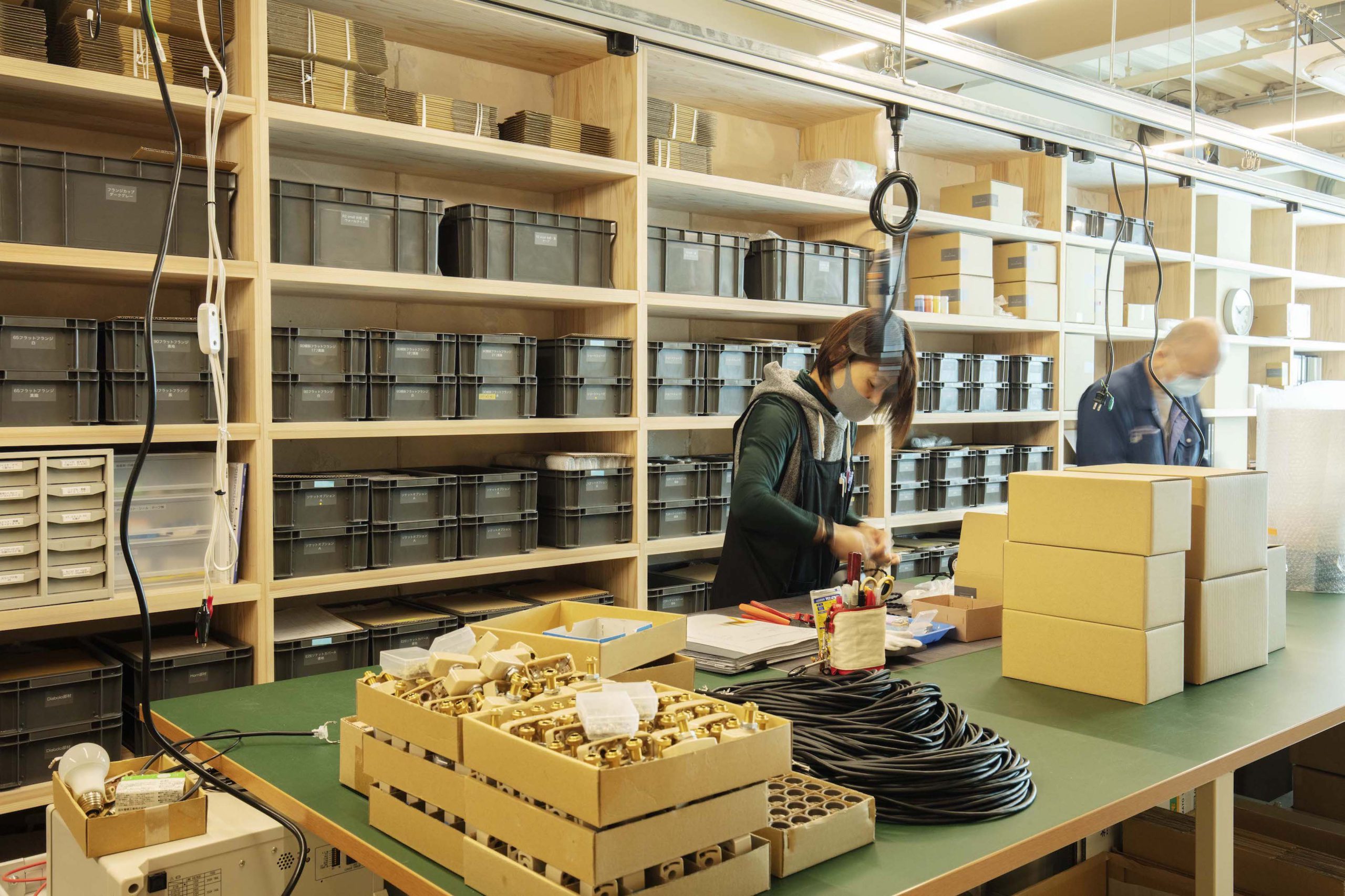 「あんなに家賃の高い場所なのに、溶接機まで揃えた設備をもっているんです。ニューヨークで成り立つなら、日本でできないはずはない。今は組み立てだけですが、工具を使った工程ができるようになると、もっと踏み込んだデザインができるし、開発力が上がります。あのスタイルでやってみたい気持ちはずっとあります」とふたり。同様に、スペイン・バルセロナの郊外に小さな村のようなコミュニティをつくり、すべての工程を一貫して行う照明メーカーのサンタ&コールも彼らの理想形だという。