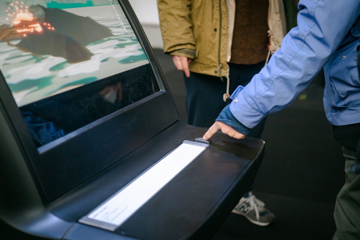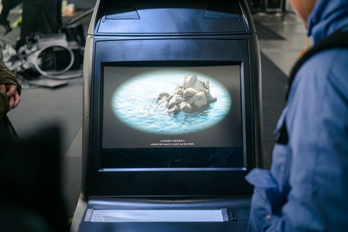 鈴木:作品の音声は、ヘッドフォンなしで筺体のスピーカーから空間にそのまま流されているんですね。だけど、ちゃんと聞こえる……。