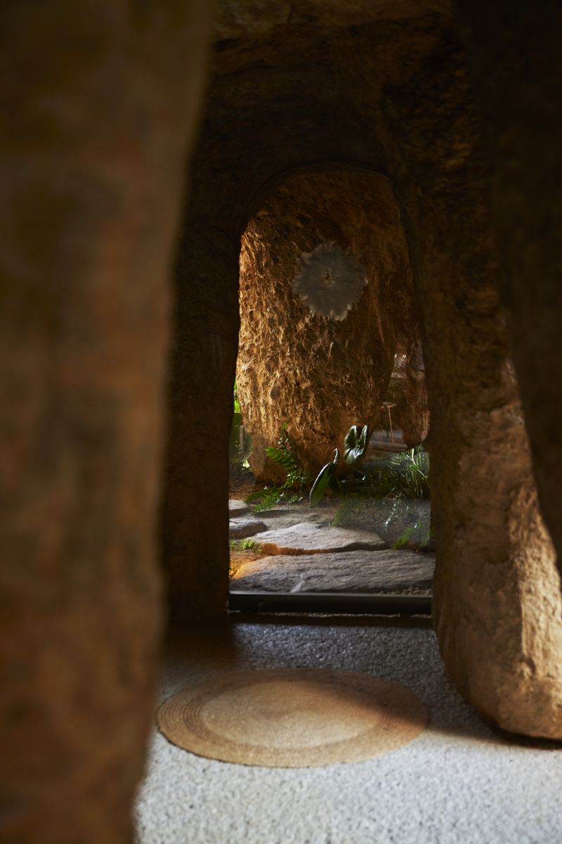 石上:その後、内部の設計を進めようと、設計図と実際に掘り上がった躯体を見比べると、こびりついた土などによる小さな差異が重なって、ぜんぜん予測していなかった新しい空間が生まれていました。そして、開口部のガラスや、水の配管、家具、調度の配置や大きさなども、掘られて現れた躯体に合わせて設計をするという通常とは真逆の工程で進めることになりました。