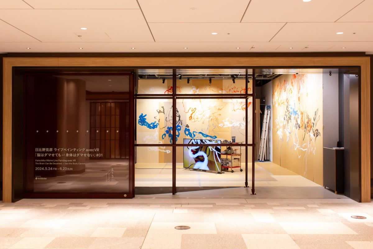 日比野:まず、ライブペインティングのお客さまにもVRゴーグルを装着していただいて、バーチャル空間での創作を共有しました。そして、「Gallery & Restaurant 舞台裏」に設置していただいた壁紙には実画も描きました。バーチャルで描いた絵のデータも残してみたんだけれど、プリントアウトすると、意外にデータが粗くって(笑)。そのあたりは、次回以降に向けて印刷会社とも詰めていたりします。