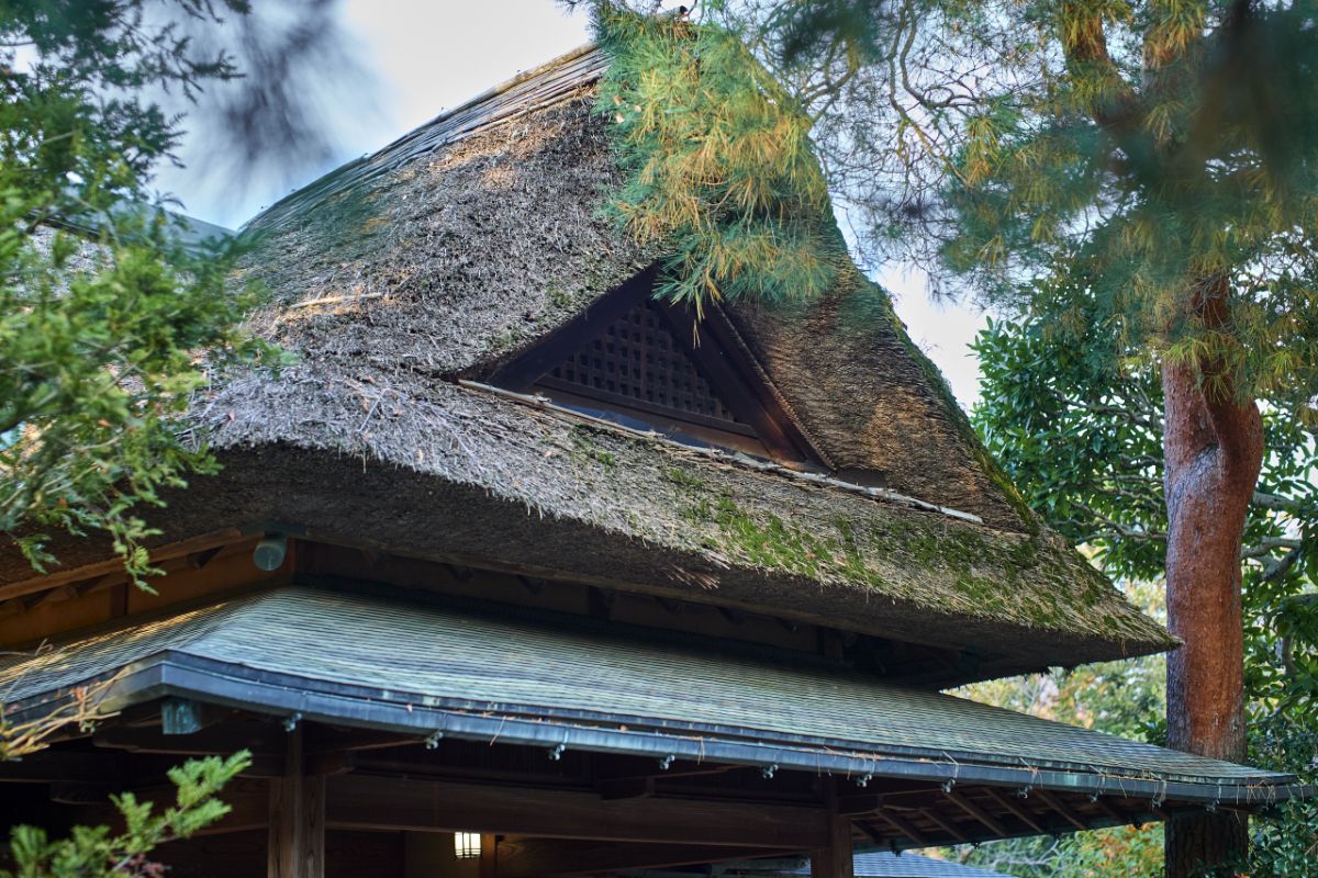 久保木:家屋は、和風建築の大工や左官などを東京から呼び寄せて住み込みで建ててもらい、2年7カ月で延べ3万5000人という人手を雇いました。東京でトップクラスの職人たちによる技術は申し分なく、建材は関西に調達に行って買い求めた銘木づくしの家です。3つの棟のうち、東棟は民家風の茅葺き屋根が施された豪農風。これは先祖の家を再興したことを示す象徴的なものです。中棟は貴顕の来客を接待するための格式ある書院造り、西棟は母・美以さんのために数寄屋造りの座敷を設けました。中棟の2階にはソファを置いた洋間もあります。これに、土蔵や長屋門を加えると、総建坪は400坪近くになります。3つの棟が建築様式を異にしながら違和感なく溶け込み、心地の良い変化と趣を味わうことができます。