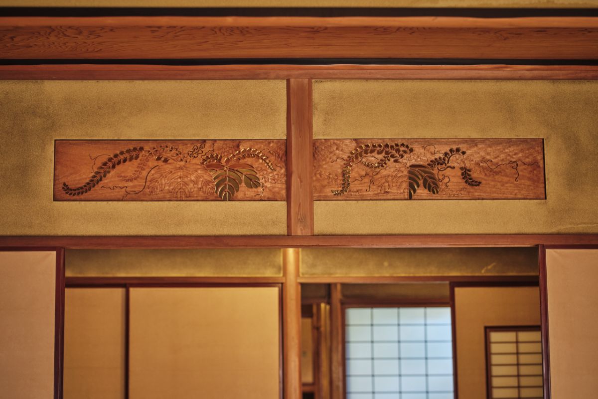 鈴木:遠山邸の細部や材料について語り始めるとキリがないのですが、元一さんがお母さまのためにつくった部屋の欄間(らんま)の桐と藤の透かし彫りを見たとき、ピンと来たんです。これは源氏物語だと。桐壺と藤壺。桐壺更衣は言わずもがな、光源氏の母。そして、その桐壺更衣に瓜二つ、美貌と才知を兼ね備え、光源氏の理想であり、初恋の女性が藤壺ですね。