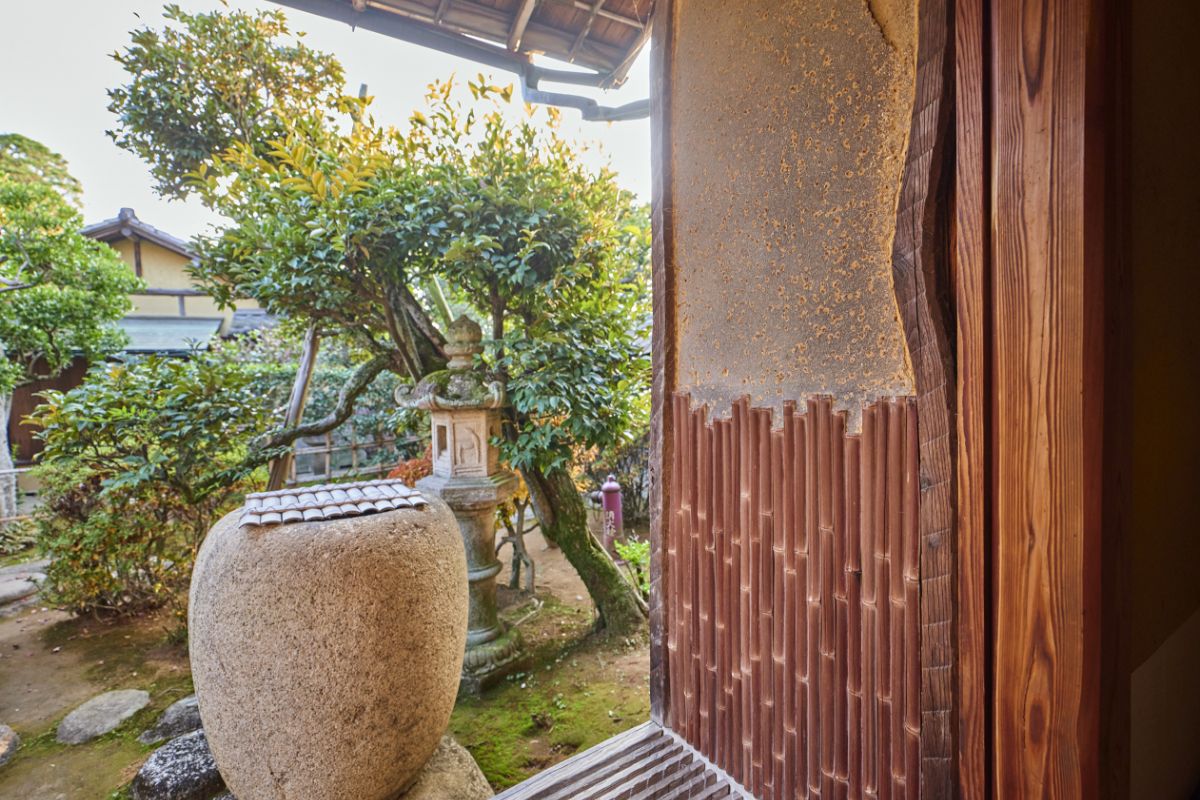 久保木:先ほど、東棟の玄関で見ていただいた大きな沓脱石(くつぬぎいし)は京都の鞍馬石です。天井は格天井(ごうてんじょう)になっていて、中に嵌(は)めてある板は欅(けやき)の玉杢(たまもく)です。欅の泡模様は気泡が入ったように見える丸い模様。同じ木材のそれぞれの部分の特徴や味わいを使い分けた、見事な職人技を随所に見ることができます。壁、建具や畳などの材料も充分に吟味されていて、自然素材の持ち味を保っています。