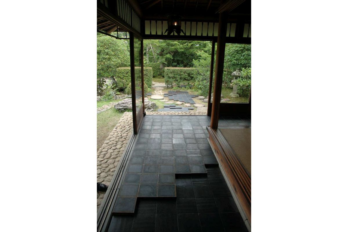 公一:先ほど見ていただいた、東棟の囲炉裏のある部屋は家族が食事をする場所でしたが、現在は2枚の畳が斜めに入っていると思います。あれは長澤英俊(1940-2018)のアート作品《浮島》です。2009年に長澤さんの展覧会をここで行い、そのままにしています。長澤さんが畳を斜めに入れると面白いと考えられて、図面を描いて川越の畳屋さんに変形床をつくってもらいました。海原に島が浮いているイメージです。