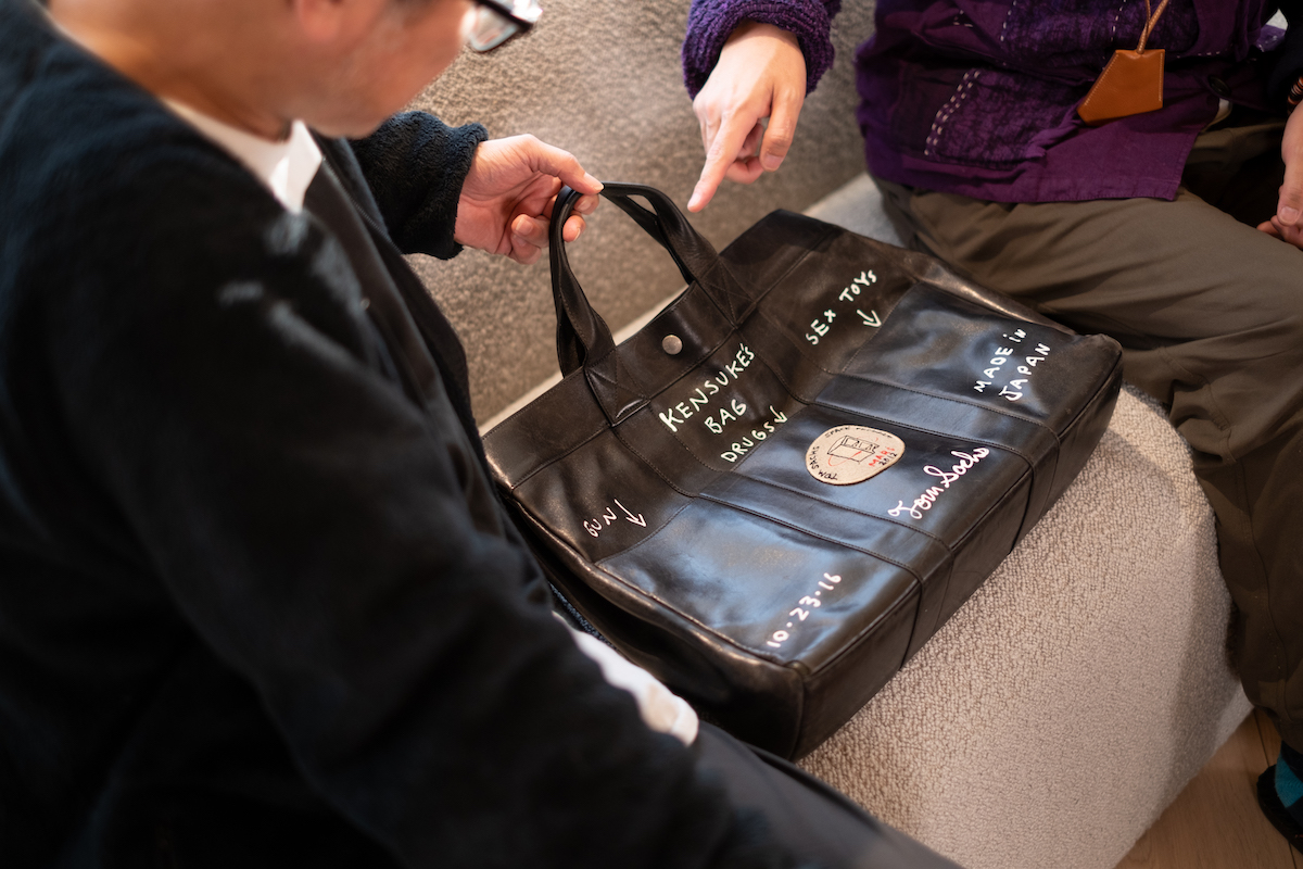 鈴木:鈴木:大好きなアーティストに敬意を表して自分でバッグに手を加えて、それを本人に見せて、さらにはケンスケのためだけの作品にしてくれたっていうのは、まさにお宝。