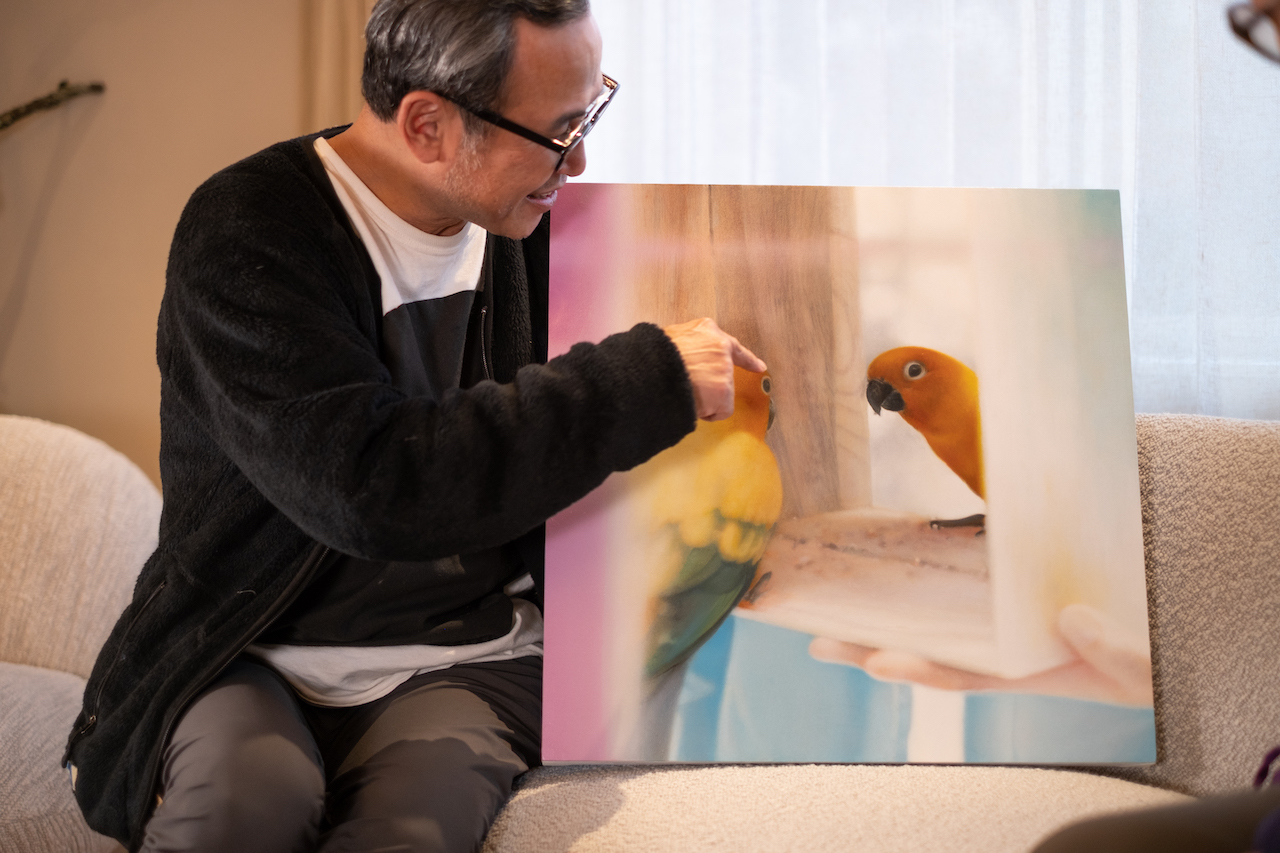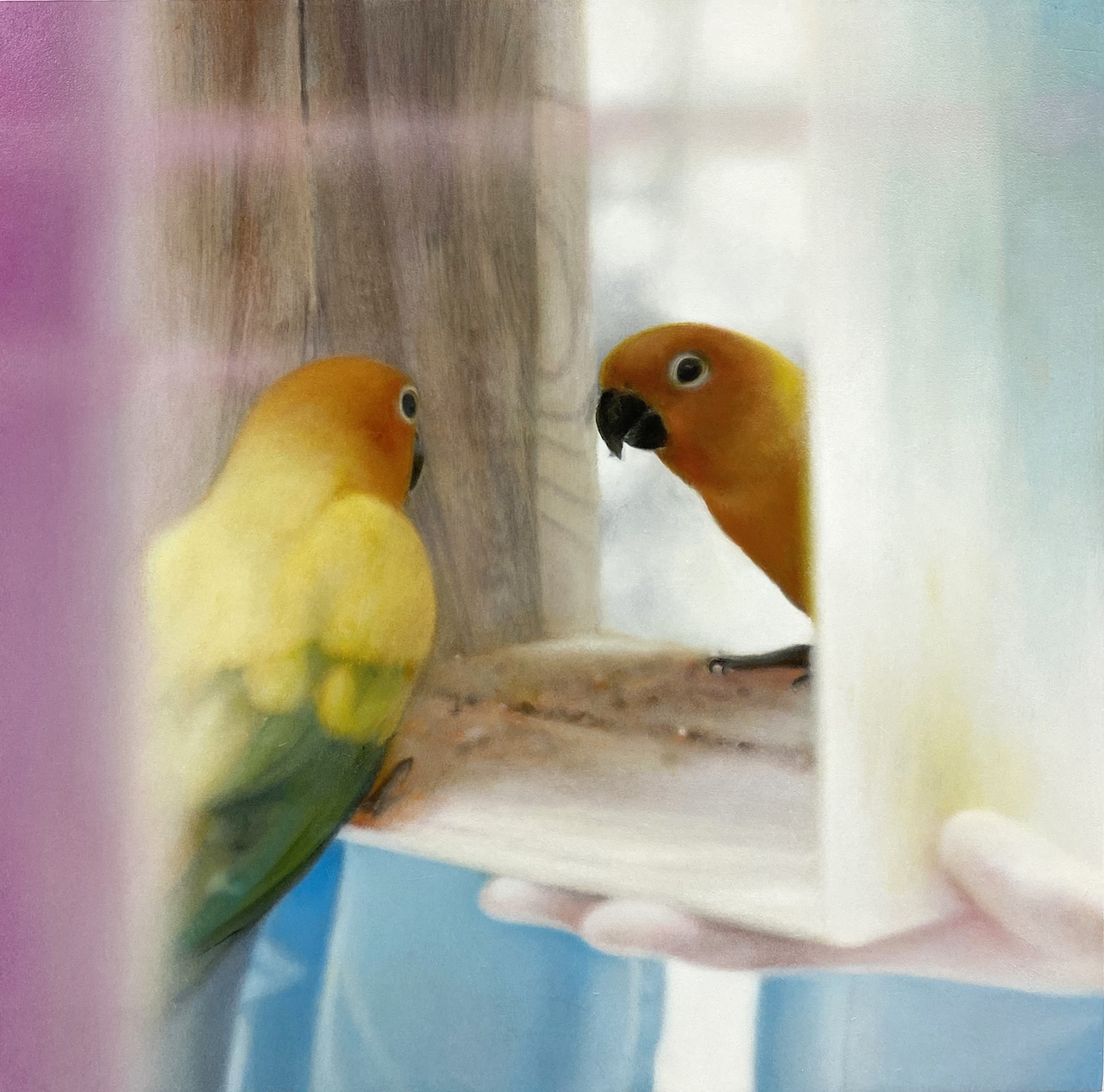 山本:これはインコが自分の姿を鏡で見ている風景を描いた作品ですか?