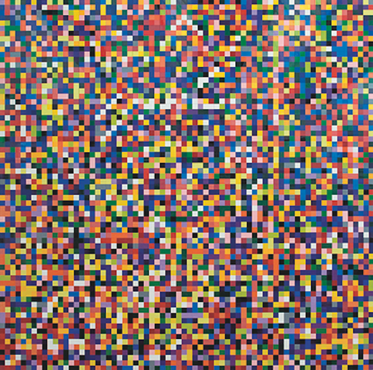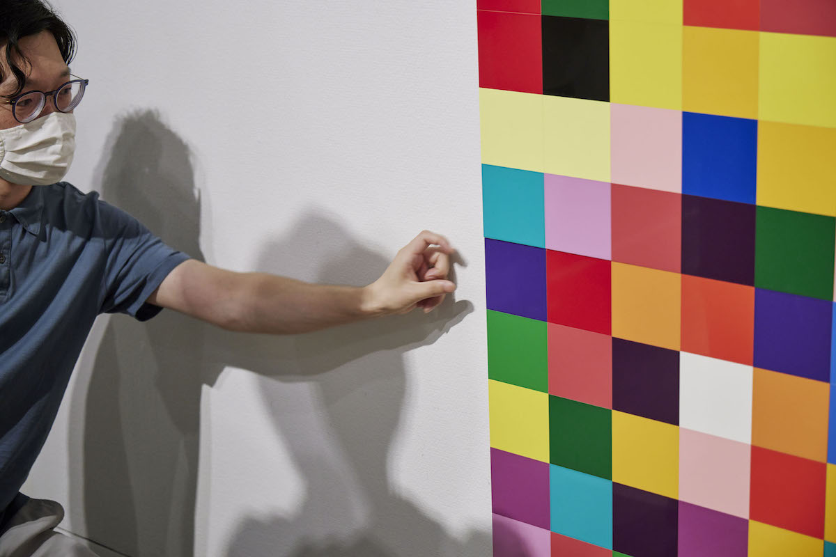 桝田:そうです。これは2007年に制作されたものです。ちょうどケルンの大聖堂のステンドグラスをつくる時期に製作されました。カラーチャートのシリーズ自体は60年代の半ばに着手していて、これはもともとは画材屋にあったカラーチャートがすごくきれいで、そのままこれは作品になるぞと思い、それを忠実に描くことから作品が生まれました。この作品は5コマ×5コマ=25コマの正方形が1ユニット。それが196枚あり、それらを組み合わせるのですが、今回は6個の正方形を形づくっています。