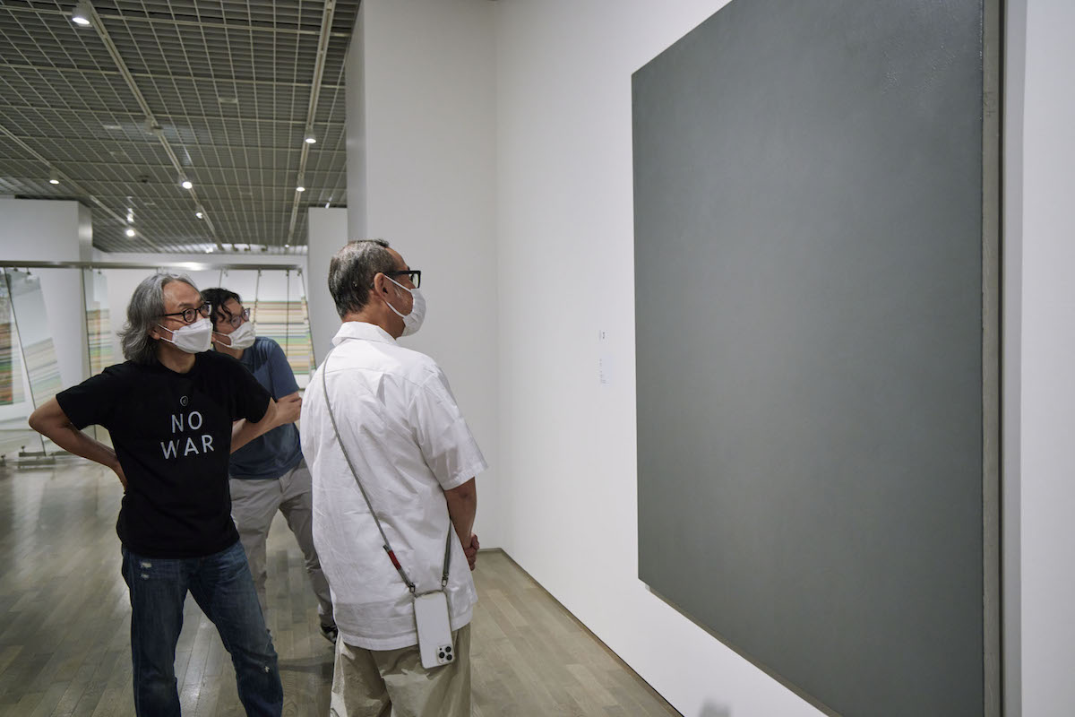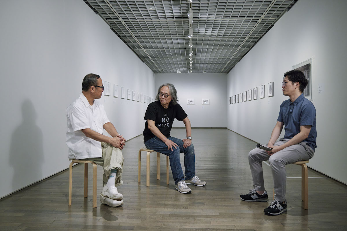 桝田:残念ながら来ることは叶いませんでした。コロナのこともありますし、90歳というご高齢で難しい。逆に僕が4月の末くらいに行きまして、展示のプランを見せながらお話しました。それまでのリモートミーティングですでにこの計画でいいと言われていたものだったんですけれども、実際に見せてみると、この壁ならこの編成がいいとか、変えてみたいという話も出てきて、作品並びを考え直してもらい、それに基づいて展示しています。
