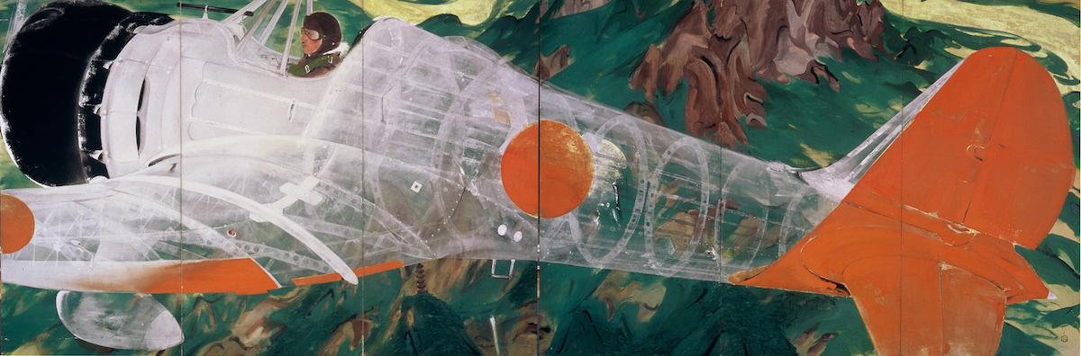会田:でもバックの風景画全体は、あえて古い中国の画法に寄せて描いている気がします。南画風というのか。それが日本製の近代兵器から透けて見える……ある意味でヤバい意図を感じないこともないです。そういう意味でもやっぱり龍子は独自というか、変わった人だなと思いますね。