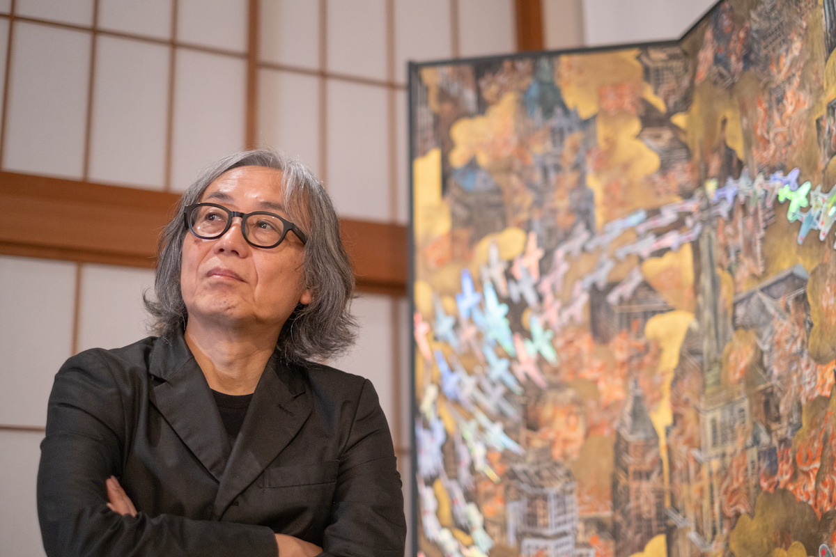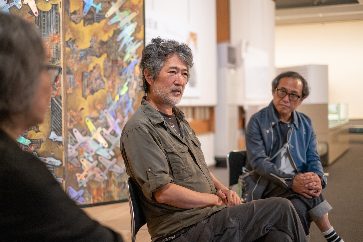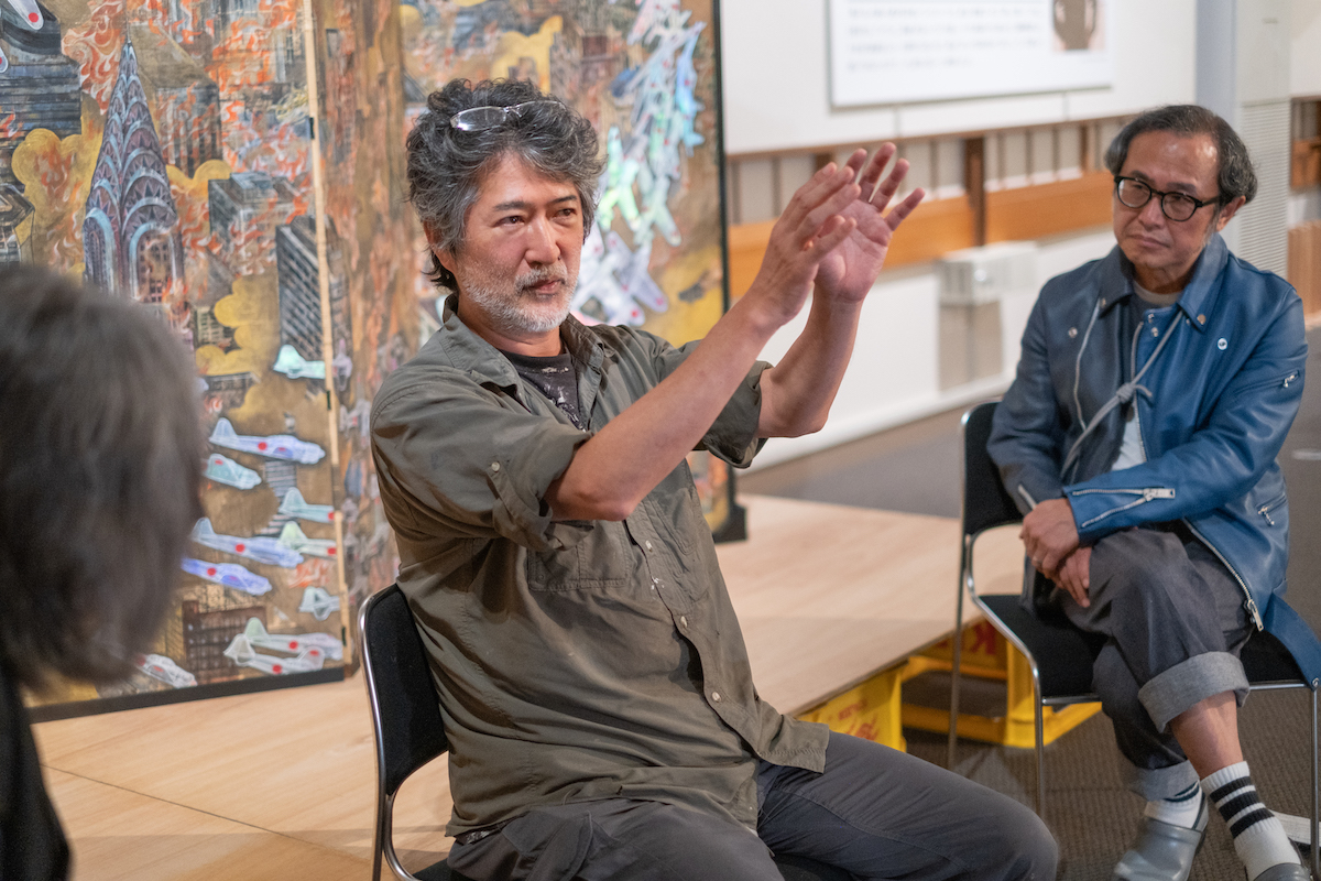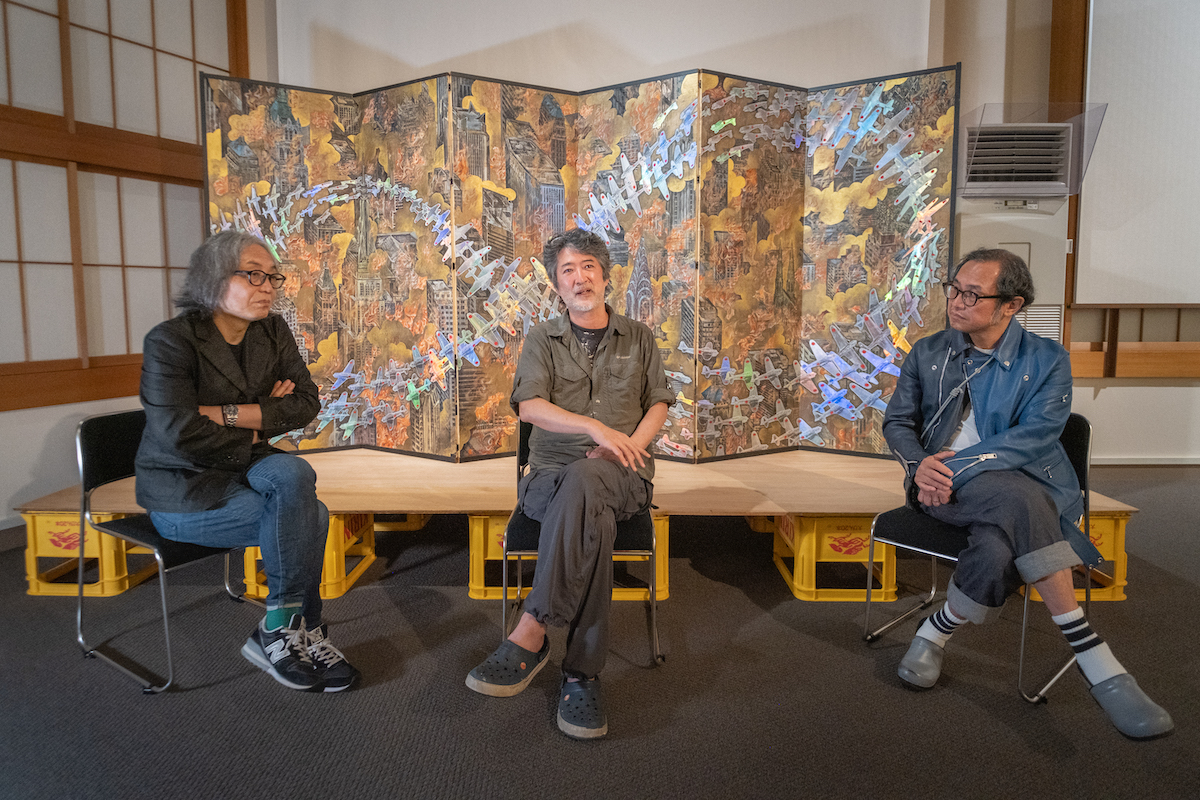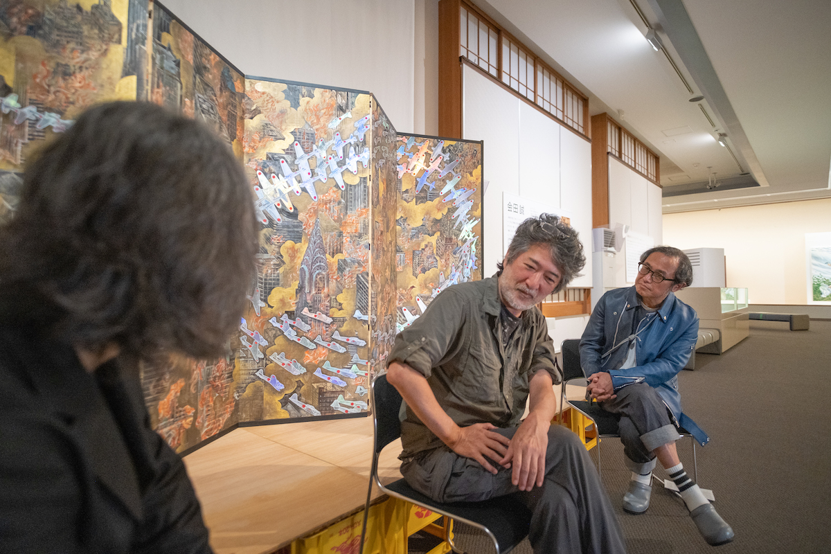 鈴木:今回は、『川端龍子vs.高橋龍太郎コレクション ―会田誠・鴻池朋子・天明屋尚・山口晃―』を開催中の大田区立龍子記念館にお邪魔しています。この展覧会は、日本屈指の現代アートのコレクターである高橋龍太郎氏のコレクション選りすぐりのアーティスト、会田誠さん、鴻池朋子さん、天明屋尚さん、山口晃さんの作品を、日本画家・川端龍子(1885-1966)の作品とともに展示しています。今回は、龍子の作品とともにメインヴィジュアルにも作品が使われている、会田誠さんにゲストとしてお越しいただきました。よろしくお願いします。