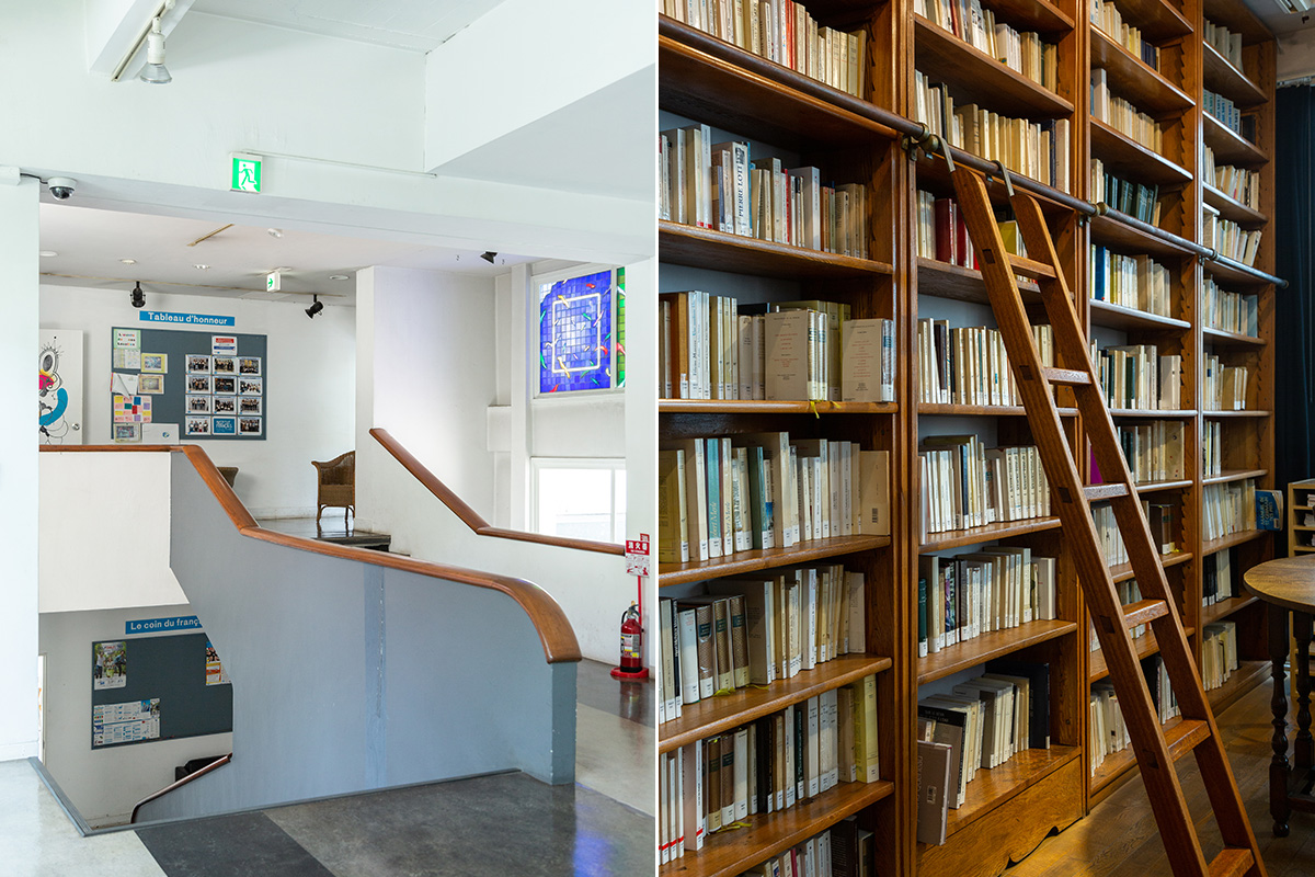 館内ではフランス語講座をはじめ、フランス映画の上映、コンサート、演劇やダンス、展覧会、講演会などの文化イベントを開催するほか、図書館や書店、レストラン(取材時は建て替えにより休業)、カフェ(取材時は新型コロナウイルス感染拡大予防のため休業)などを有し、フランス文化に関心を持つ人々に広く門戸を開く。自ずとフランスを愛する人々、そして日本で暮らすフランス人が集う場となった。「アンスティチュ・フランセ東京」から程近い神楽坂はフランス人が多く暮らす街としてよく知られるが、その始まりに「東京日仏学院」があるとも言われる。