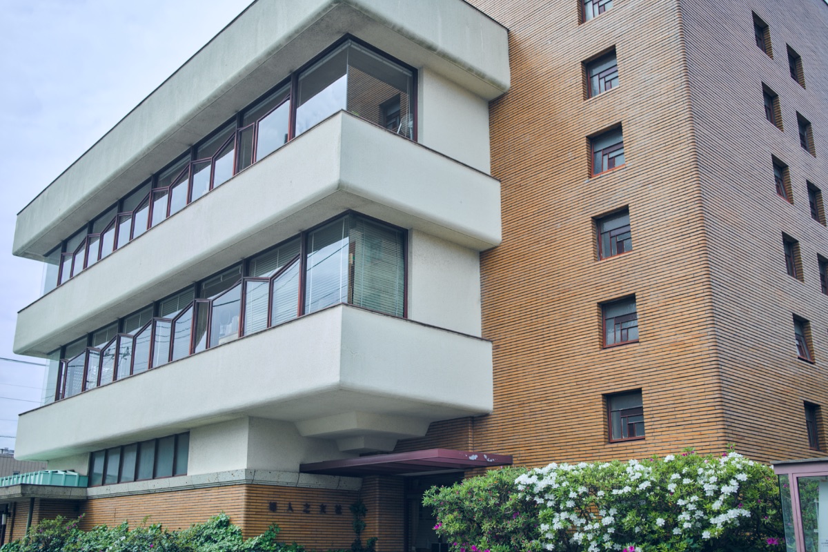 宇治平等院鳳凰堂からヒントを得たといわれる校舎は、中央棟の東西にも左右対称に建物が伸びやかに広がる計画。東西教室棟が建設された後の1927年には、遠藤が設計を引き継いだ講堂が道を挟んだ南側の敷地に竣工した。