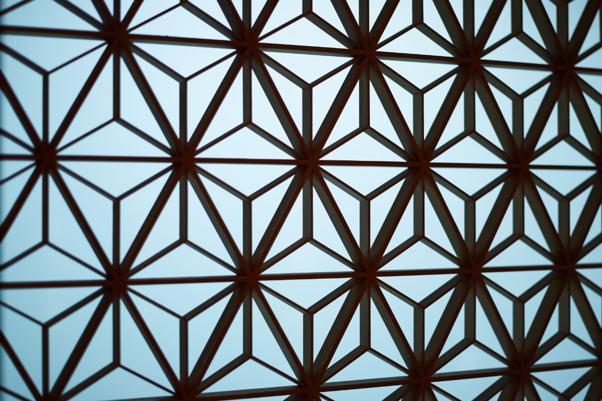 建築家の親子によって名建築の設計が継承されるのは稀有なことであるが、さらに谷口吉郎氏は大倉集古館を設計した伊東忠太氏に師事していたことから、3世代にわたって設計のバトンが渡されているともいえる。大倉集古館で窓などに用いられている正六角形の「亀甲文」は、亀の甲羅に似ていることから、長寿や吉祥のシンボルとして平安時代から盛んに使われてきたもの。オークラスクエアの1辺が約42mの水盤の中に置かれた六角形の島をはじめ、新しい2棟の建物にも、オークラブランドを象徴するモチーフとして亀甲文はそこかしこに現れている。