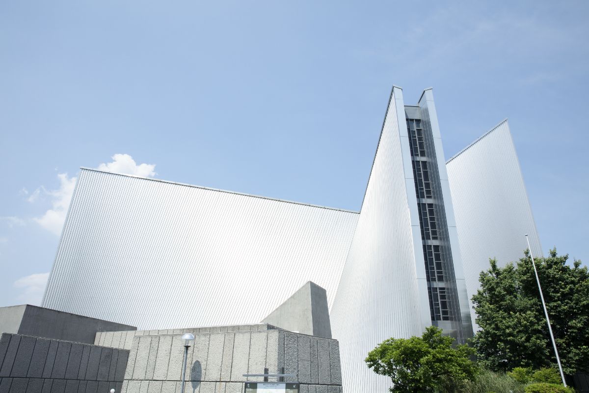 東京メトロの江戸川橋駅から進み、関口台公園脇の鳥尾坂を登った文京区関口の高台。ホテル椿山荘東京と目白通りを挟んだ向かいに、東京カテドラル聖マリア大聖堂はある。周囲には大学や高校などの教育施設が多くあり、落ち着いた雰囲気の文教地区。優美な形状で柔らかな輝きを放ちながら、通りから少し引いた位置に建つ東京カテドラル聖マリア大聖堂は、品格を漂わせるランドマークとなっている。