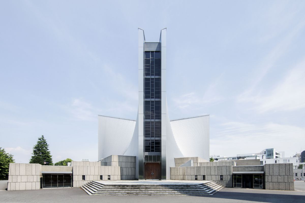 計画は、1961年に指名競技設計が実施されたことに始まる。競技に名を連ねたのは、前川國男、谷口吉郎、丹下健三という錚々たる建築家3名。その中で選ばれたのが、「岩場の水面に舞い降りて来た銀色の白鳥が羽を震わせているかのよう」と称される丹下案であった。教会が竣工した同年の9月には、代々木競技場も竣工している。近代的な形態と構造、機能を融合させる設計は、この時期の丹下の大きな特徴といえる。