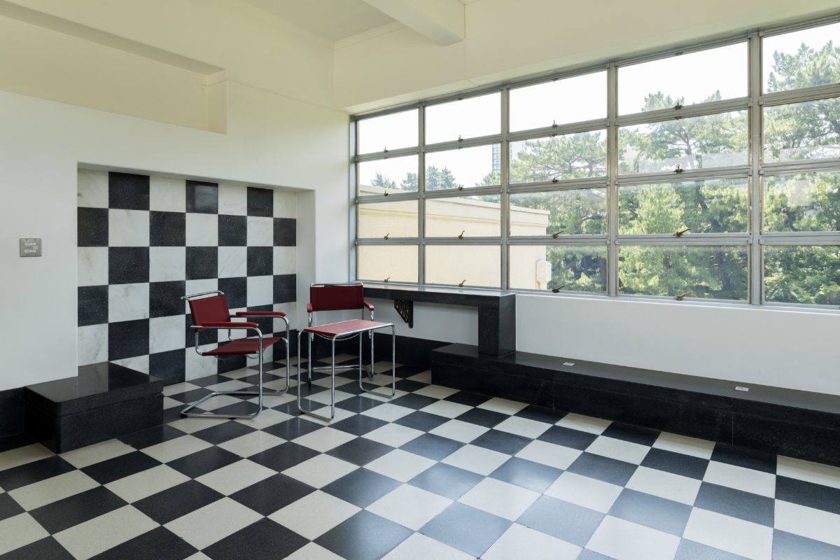 一方、面白いのは、アール・デコだけではないところです。1階のラパンが手掛けた部分というのは、もちろんアール・デコそのものなのですが、2階の広間と、北の間と呼ばれているベランダ的な部屋との境に使われている窓ガラスなどはもうオランダの芸術グループ、デ・ステイルやモンドリアンの絵画を連想させるデザイン性を持っています。あと、3階の「ウインターガーデン」という、冬場の植物を管理するための温室はまさにル・コルビュジエのようです。モダニズムを追求した機能美。当時のいろいろなデザインの動向が一つの建物の中に共存している。普通だとそういう寄せ集め的なものは破綻が出てくるはずなのに、それをうまくまとめて調和させています。