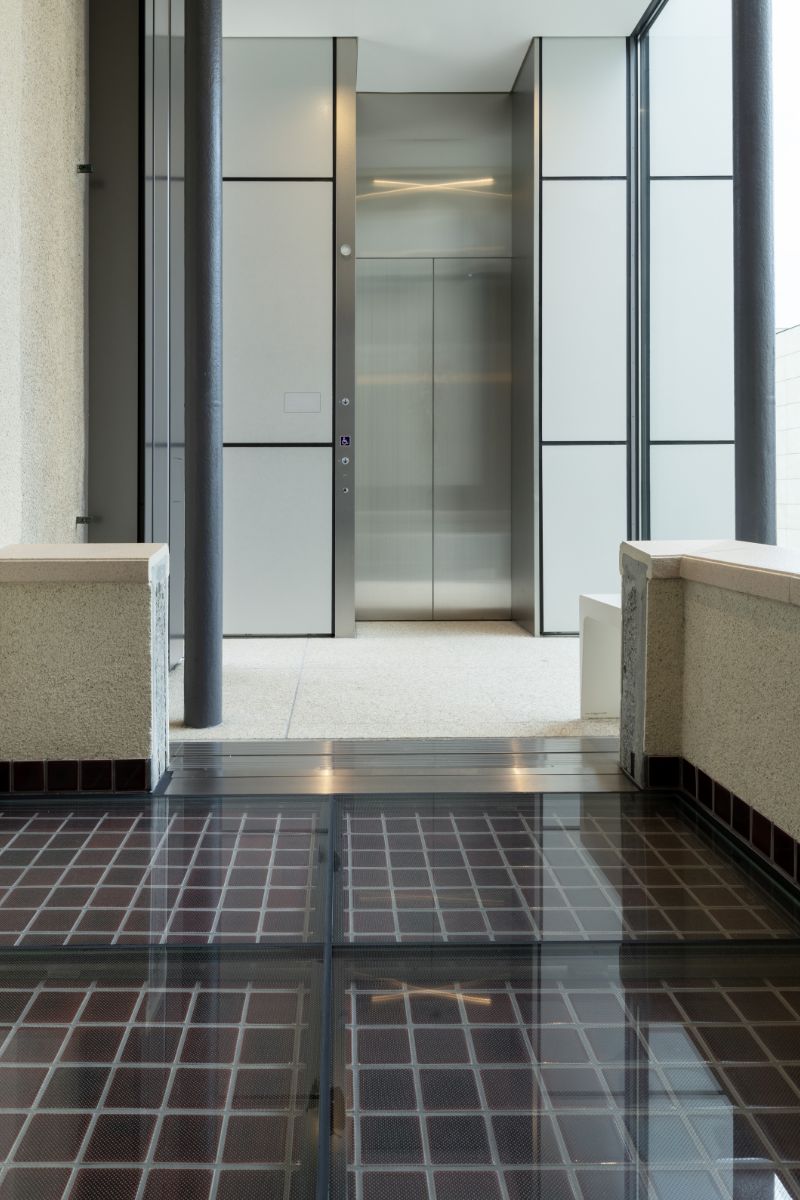エレベーター設置のためにはバルコニーの一角を切らなければならない。そこは文化庁と協議しました。そういった一連の工事をしていくなかで、もともとのバルコニーだった当時の床材が出てきました。本当に断片ですけど、京都の幻のタイルという泰山タイルが出てきたのです。その断片から当時そこに敷かれていたであろうタイルを復元しました。竣工当時の景観がよみがえったというわけです」