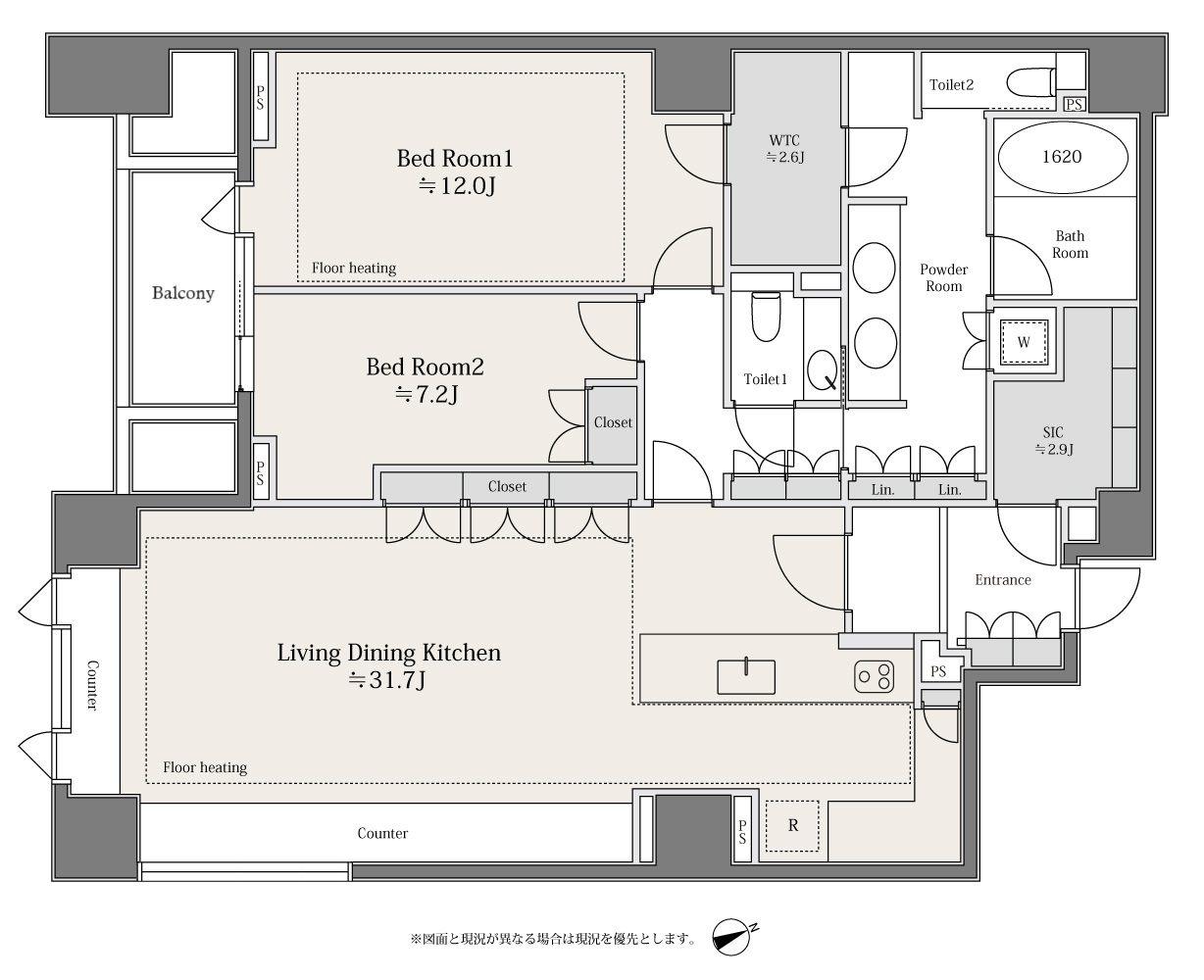 9階に位置する本邸は、南西向きの二面の窓からあたたかな光が差し込み、開放的な空を望む住まいです。リビングダイニングキッチンは約31畳とゆとりのある広さ。ご家族のつながりを大切にできるよう、キッチンはリビング全体を見渡せるオープンタイプを採用しました。