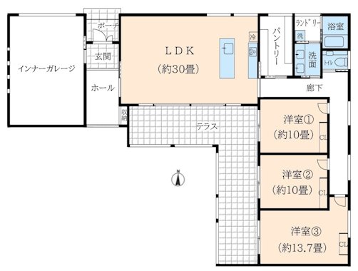 本邸は土地面積約900平米、建物面積230平米のゆとりある平屋の戸建て住宅です。