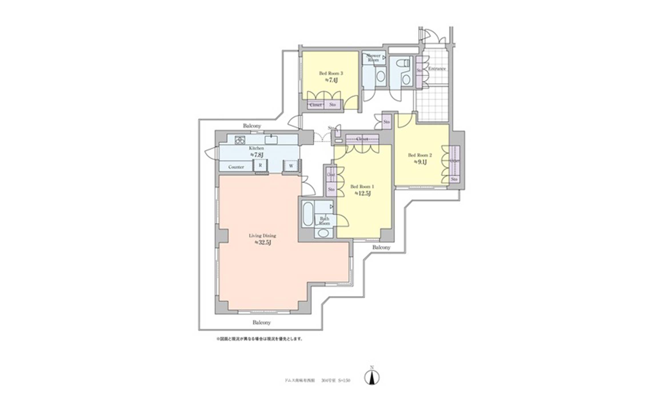 南・西・東の3面に開口を配した角住戸。