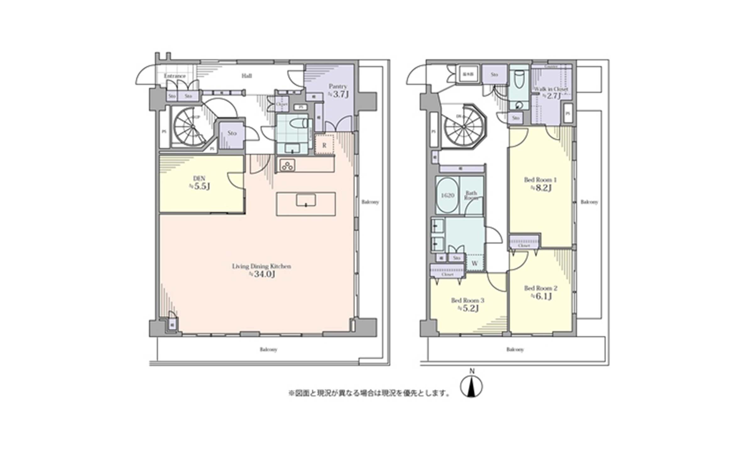 当該住戸は専有面積165㎡超の最上階メゾネットでございます。