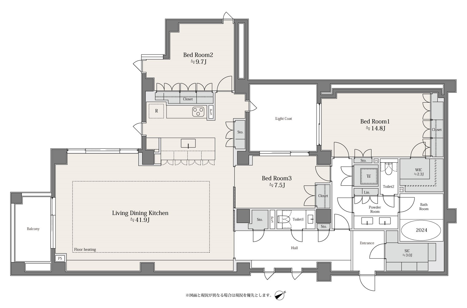 主寝室の約2.3畳の大型ウォークインクローゼットのほか、約3畳の大型シューズインクローゼットやストレージを完備。リビングやキッチン周りの造作部分にも、意匠と利便性を兼ねた収納を各所に備え、十分な収納力を誇ります。